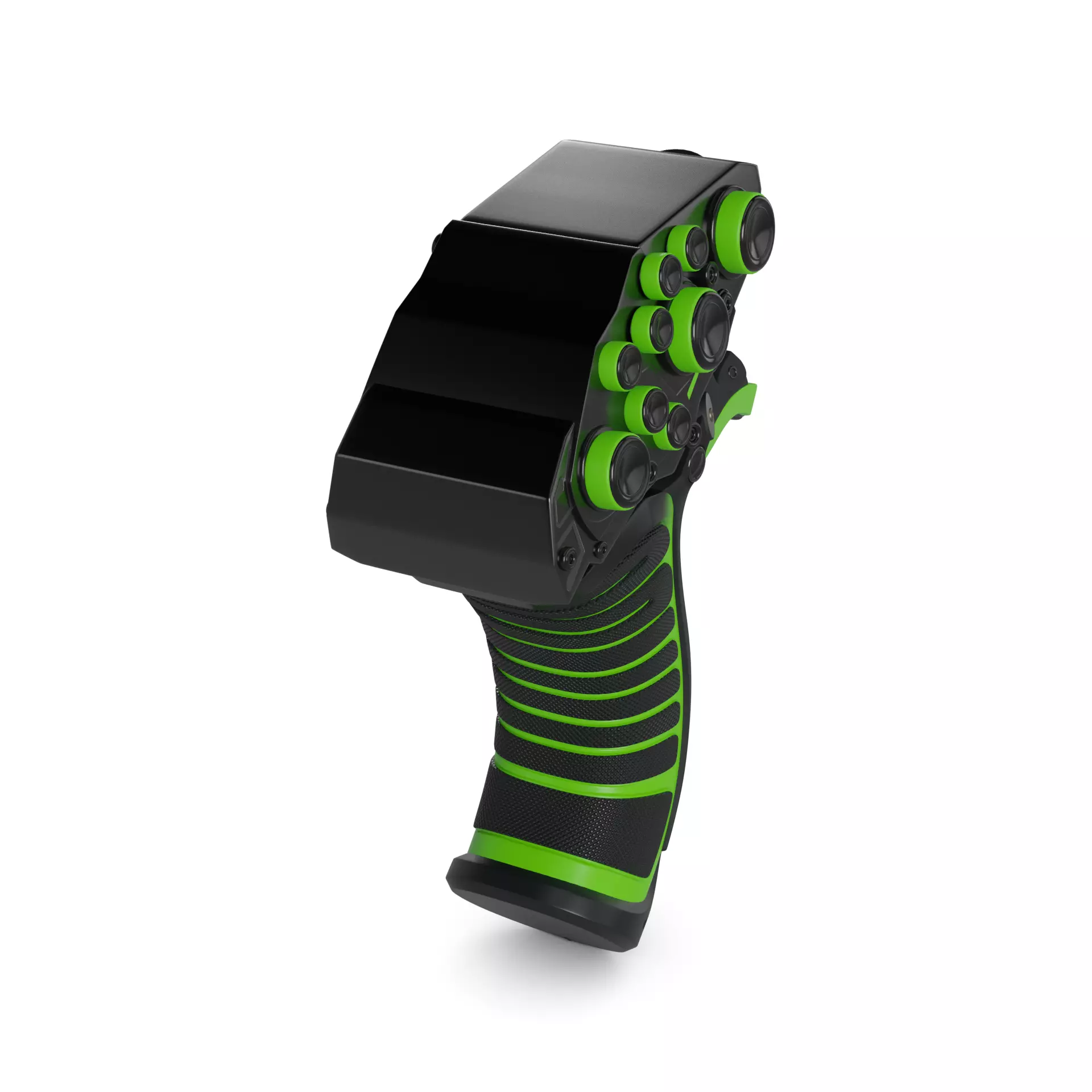 A neon green racing handbrake with a rubberized grip, ensuring comfortable handling for long hours of gameplay.