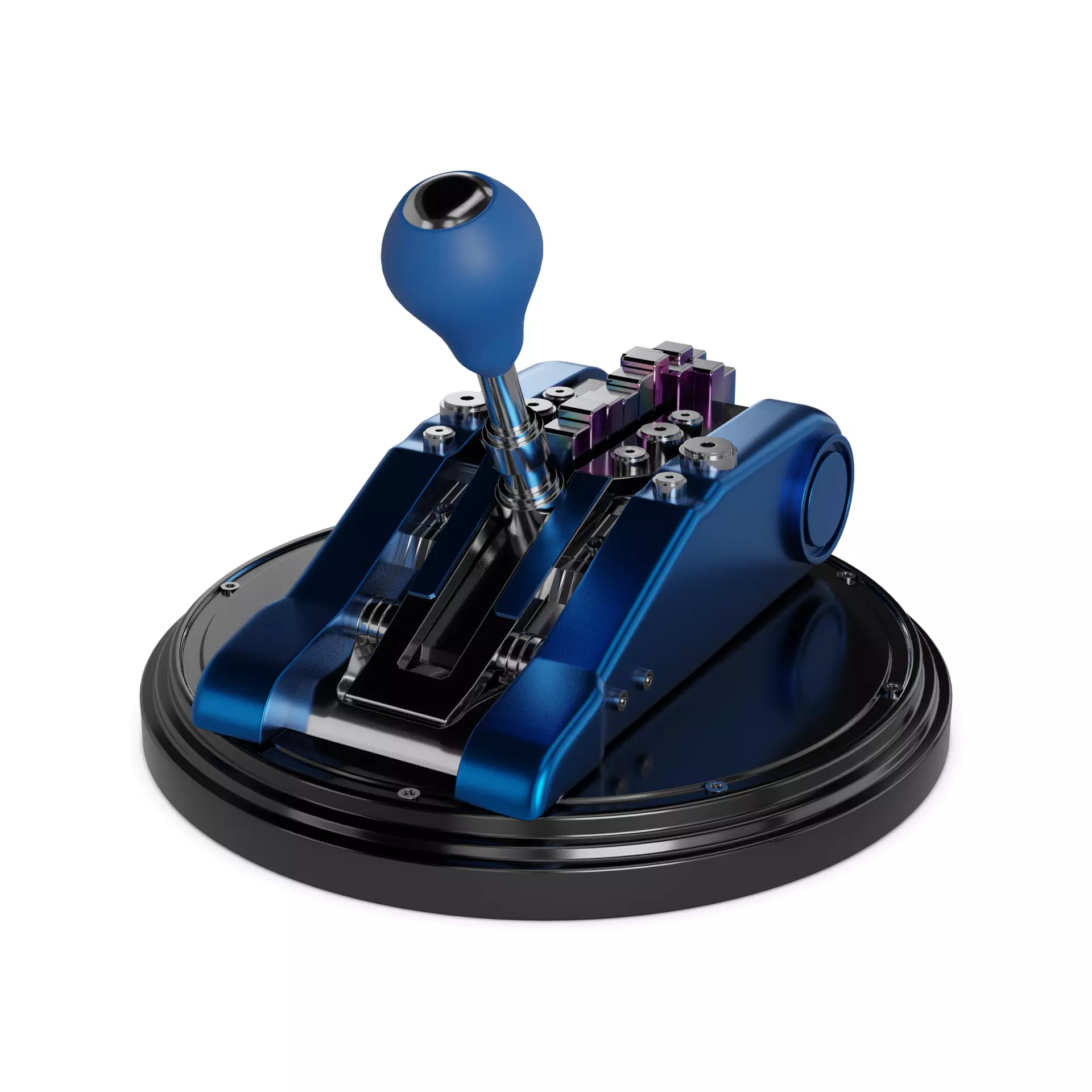 A metallic blue racing handbrake with a glossy finish, reflecting the lights of your gaming setup for an eye-catching display.
