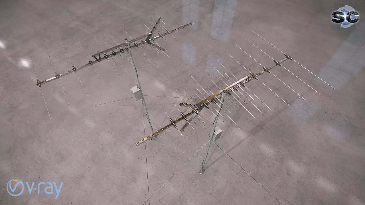 Highly detailed TV analogue antenna. 12 materials.Textures 2K (2048 X 2048 px) - 8 Maps, 1K (1024 X 1024 px) - 1 map,Danger sign (diffuse map, 512 X 512 px) - 1 item.