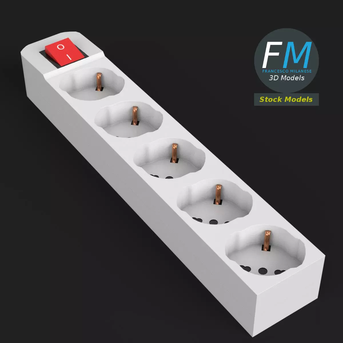Schuko power strip 3D Model, nr. 1 in my collection. Production-ready 3D Model, with PBR materials, textures, non overlapping UV Layout map provided in the package.