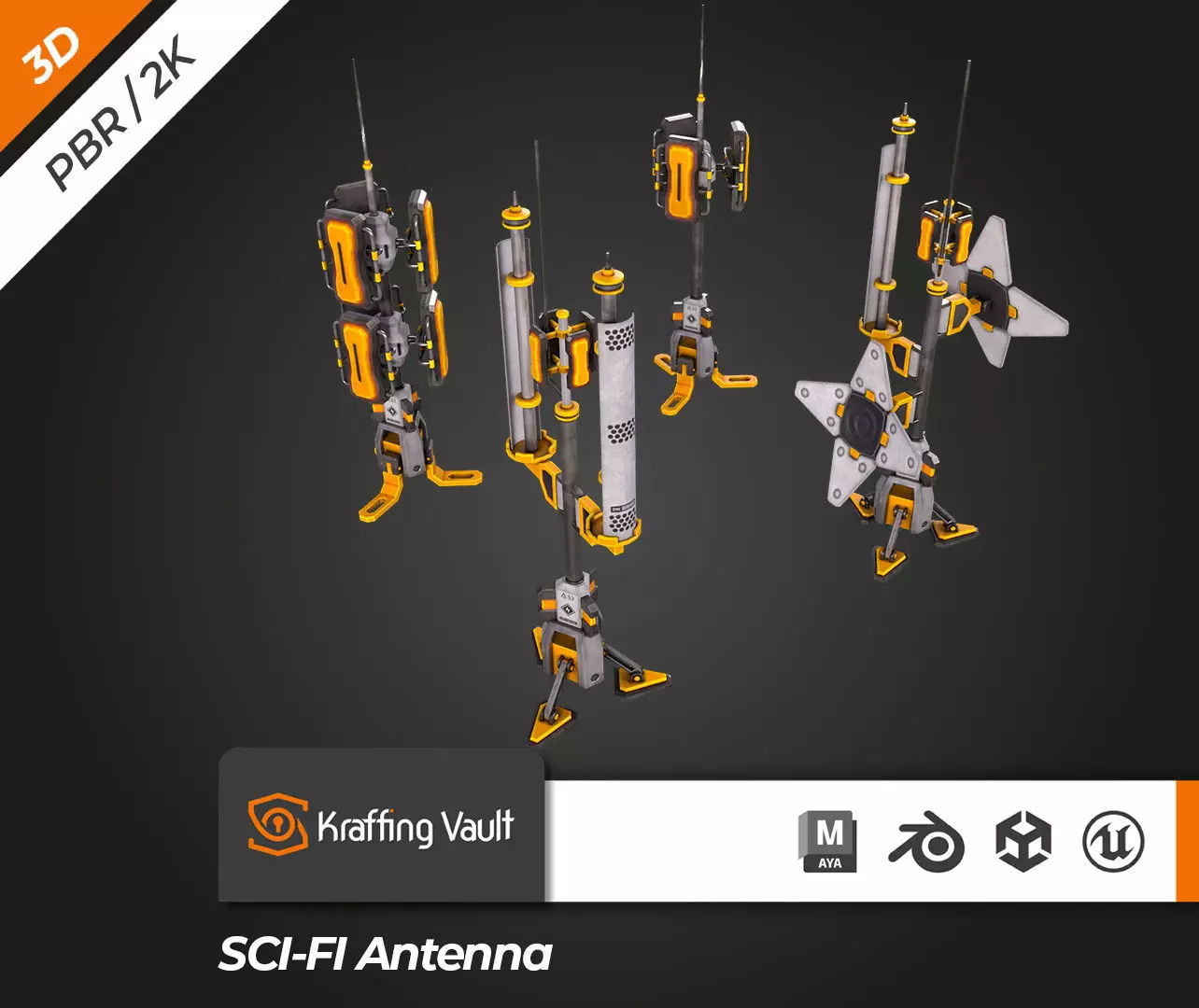 Kraffing presents a 3D modeling SCI-FI Antenna V1. Recreated design so you can use it in personal projects, scenes, videogames and more.