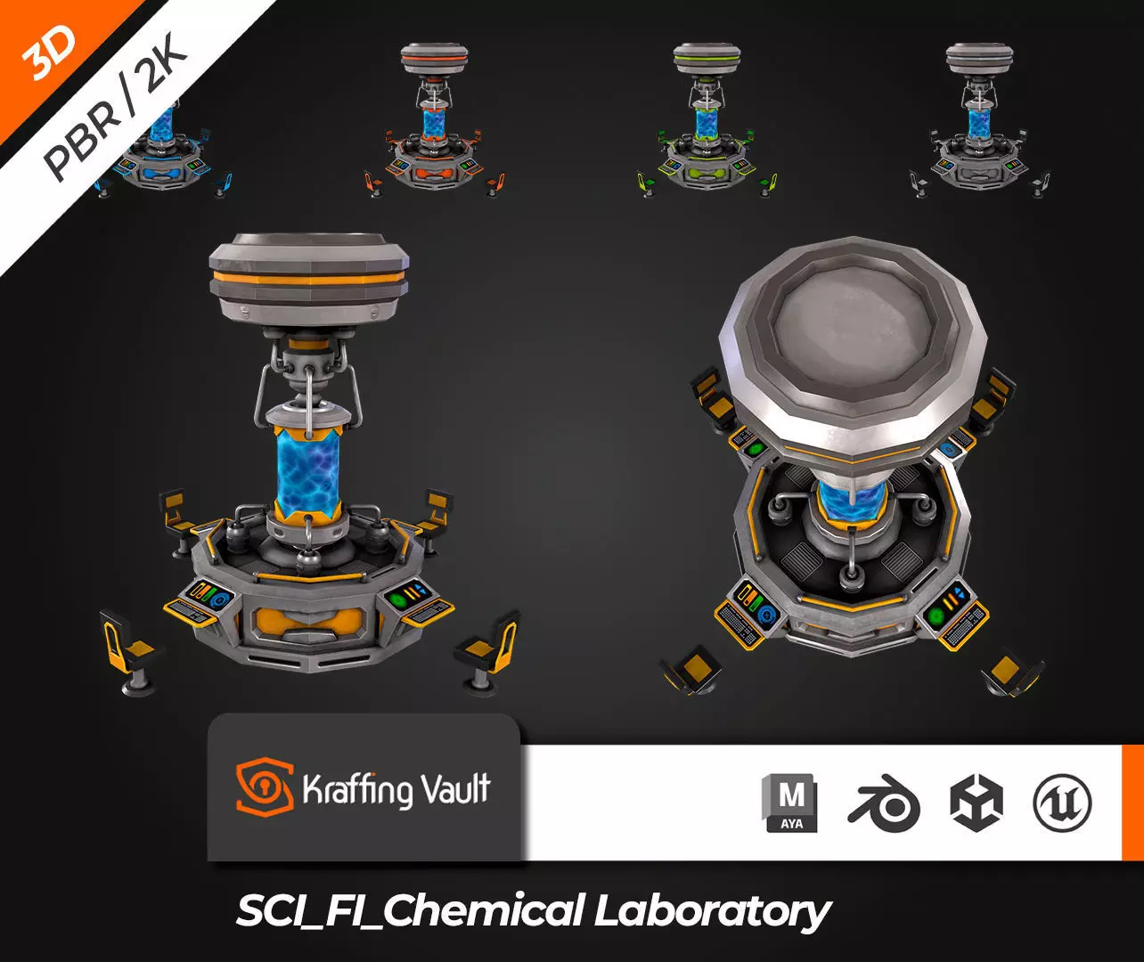 Kraffing presents a 3D modeling SCI-FI Chemical Laboratory V1. Recreated design so you can use it in personal projects, scenes, videogames and more.