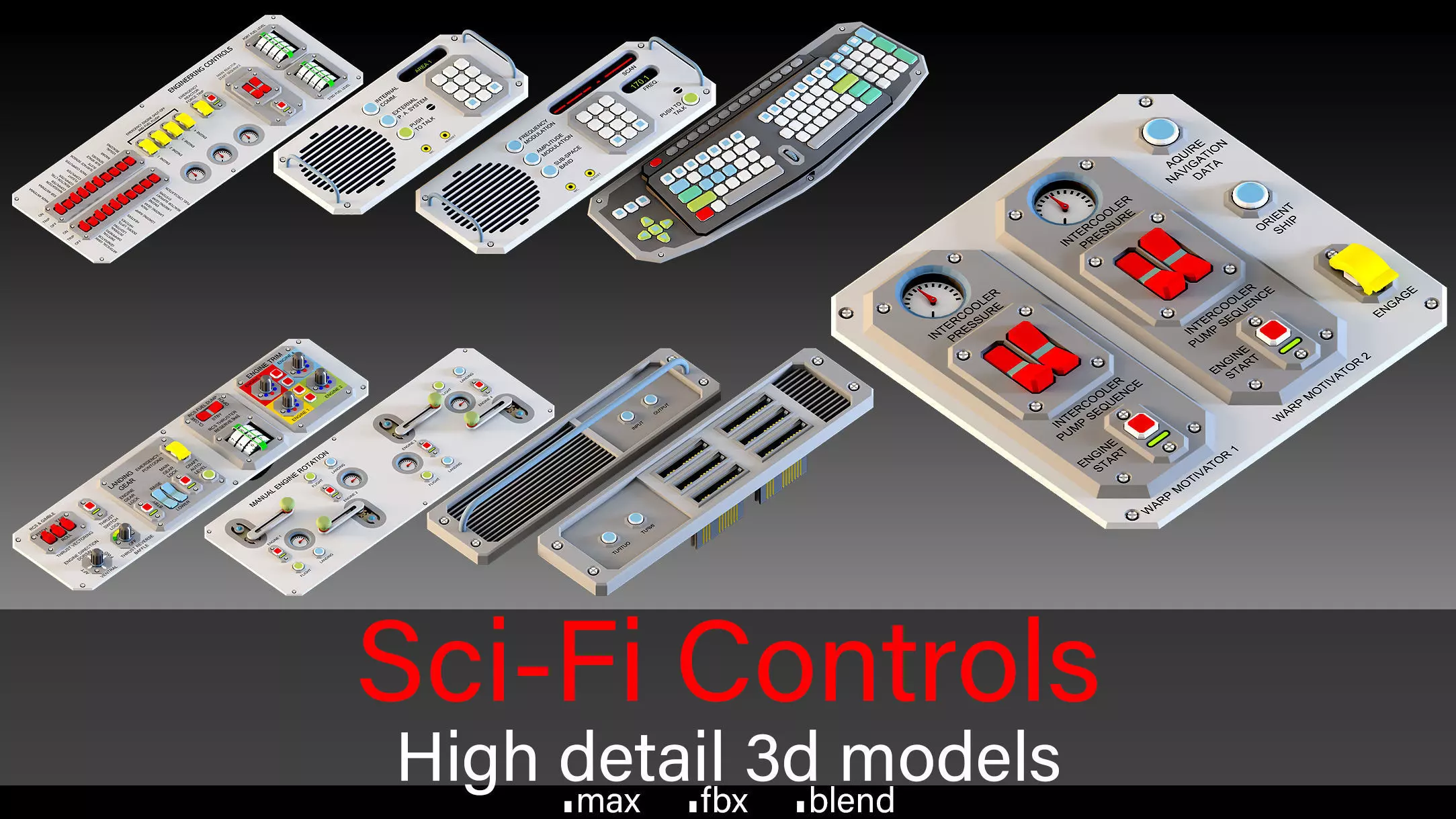 Step into the future with this Sci-Fi Control Panel Kit, a high-quality pack of modular details designed for spacecraft interiors, futuristic environments, and advanced control rooms.This collection includes buttons, monitors, switches, levers, keyboards, dials, and handles, giving you all the essential elements to build immersive sci-fi cockpits or tech-heavy laboratory scenes.