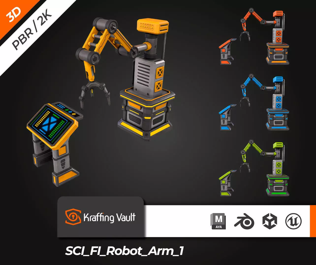 Kraffing presents a 3D modeling SCI-FI Robot Arm V1. Recreated design so you can use it in personal projects, scenes, videogames and more.