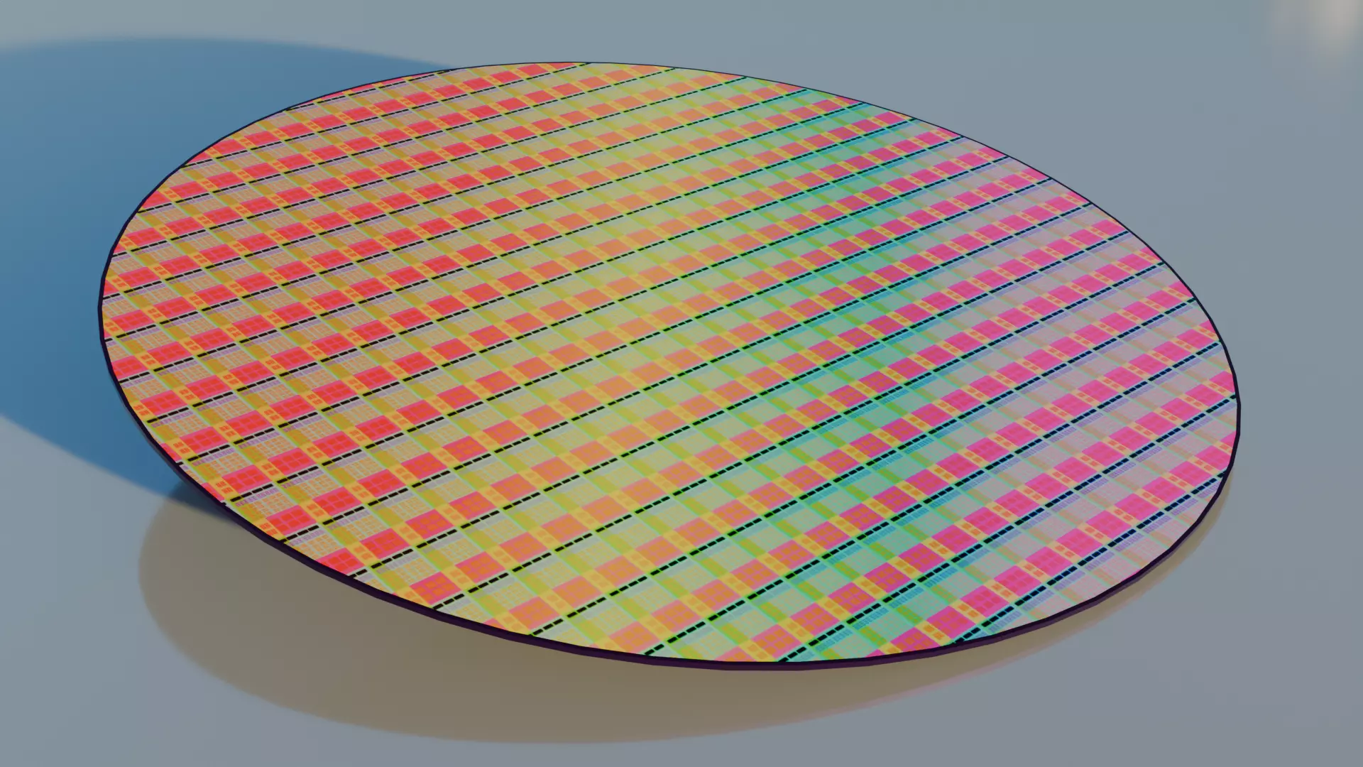 3D Semiconductor silicon wafer, made of semiconductor chips.blend, fbx, stl, obj, mtl, x3d.