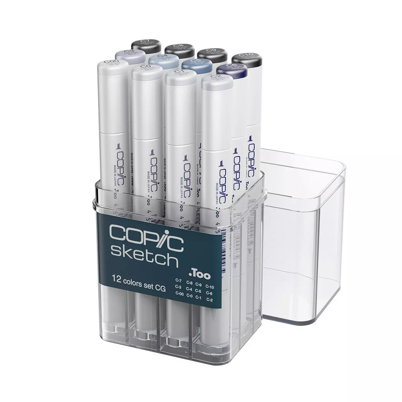 3d model Sketch Cool Gray 12PC Set Markers by Copic. The Sketch Cool Gray 12PC Set Markers by Copic offers a refined palette of cool-gray tones suited for illustration, rendering, and professional sketching tasks. With their ergonomic dual-tip design, refillable ink system, and durable construction, they combine high-performance flexibility with artist-grade reliability. Ideal for design studios, animation work, or color-sensitive applications, they enhance shading, tonal variation, and metallic effects with subtle sophistication. Dimensions of the set: H 15.49 x L 11.18 x D 3.05 cm / H 6.1 x L 4.4 x D 1.2 inches. The Vray, Corona, and Blender files come with materials in place, ready to render.
