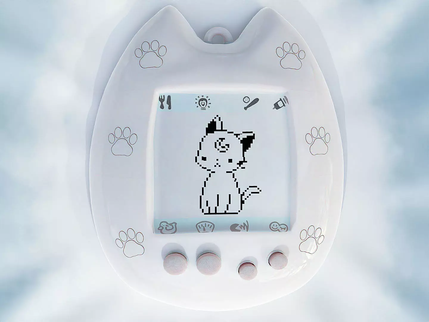 3D model of a stylized cat-themed Tamagotchi, combining retro digital pet nostalgia with the playful charm of a feline friend. Designed with clean topology and a low poly, this model is ideal for real-time applications such as game engines, while also delivering enough detail for high-resolution renders and concept art. Perfect for stylized mobile games, cozy virtual environments, or a whimsical digital toy collection, this cat Tamagotchi adds warmth, character, and a touch of vintage cuteness to any scene.