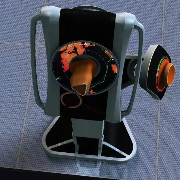 Telecommander post for a futuristic mobile commander bridge for large-scale vehicles, such as ships or spaceships. The post can move on a MAGLEV mobility floor, on a programmed or manual track, according to mission necessities. Post has a control stick and a spinner wheel, with LCD screens for situation awareness. Post can change its height according to user. Post is constructed from CompAl, a 22nd century composite structural material from stainless, duralium and carbon fiber.