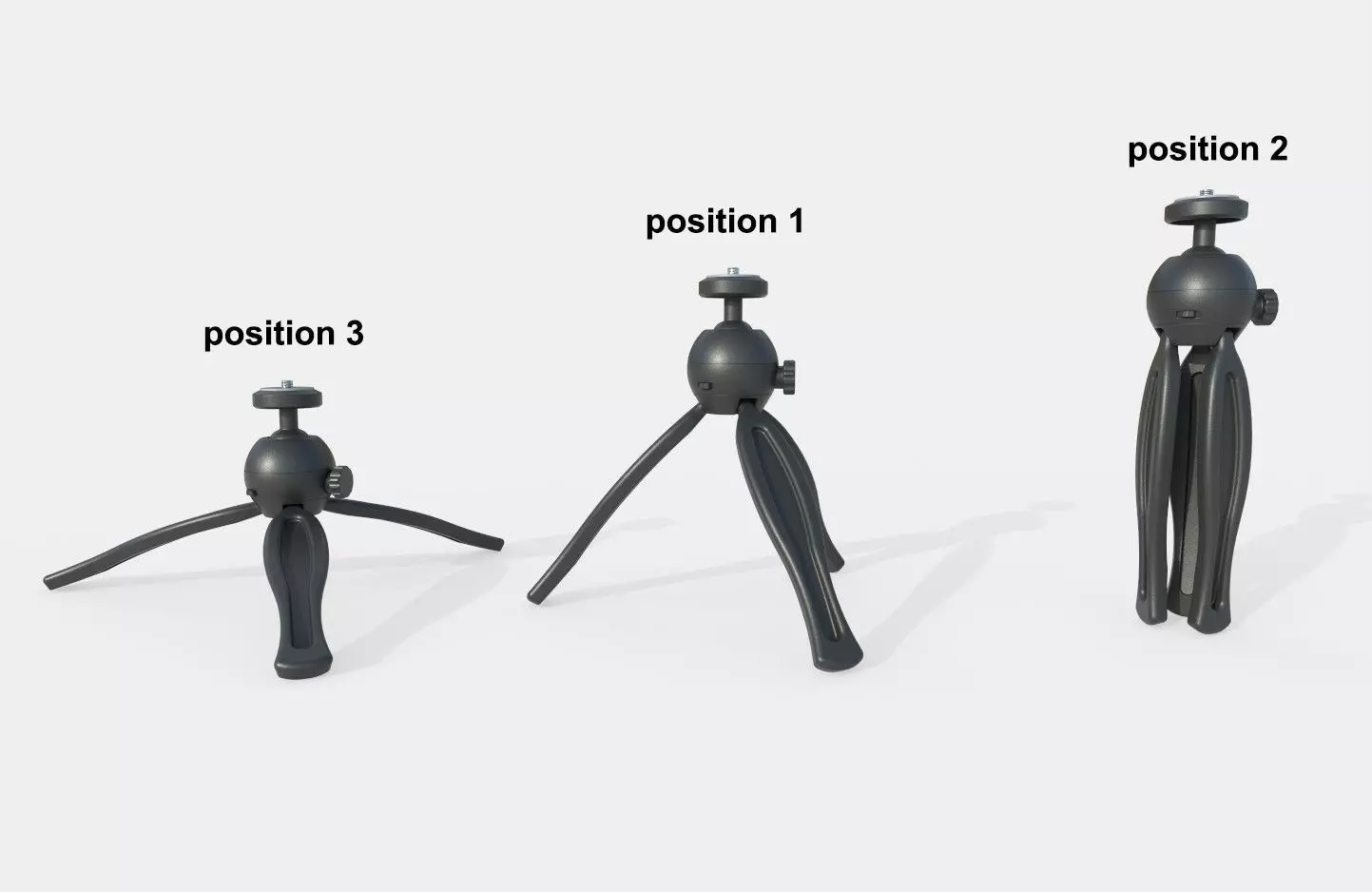 High detailed Tripod Model 03 with 3 different position and named p1, p2 and p3. objects are attached with legs.