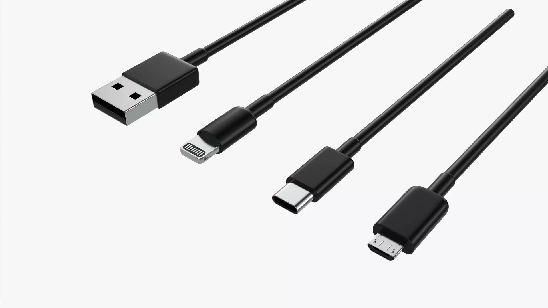 USB C lightning cables set black 3D model