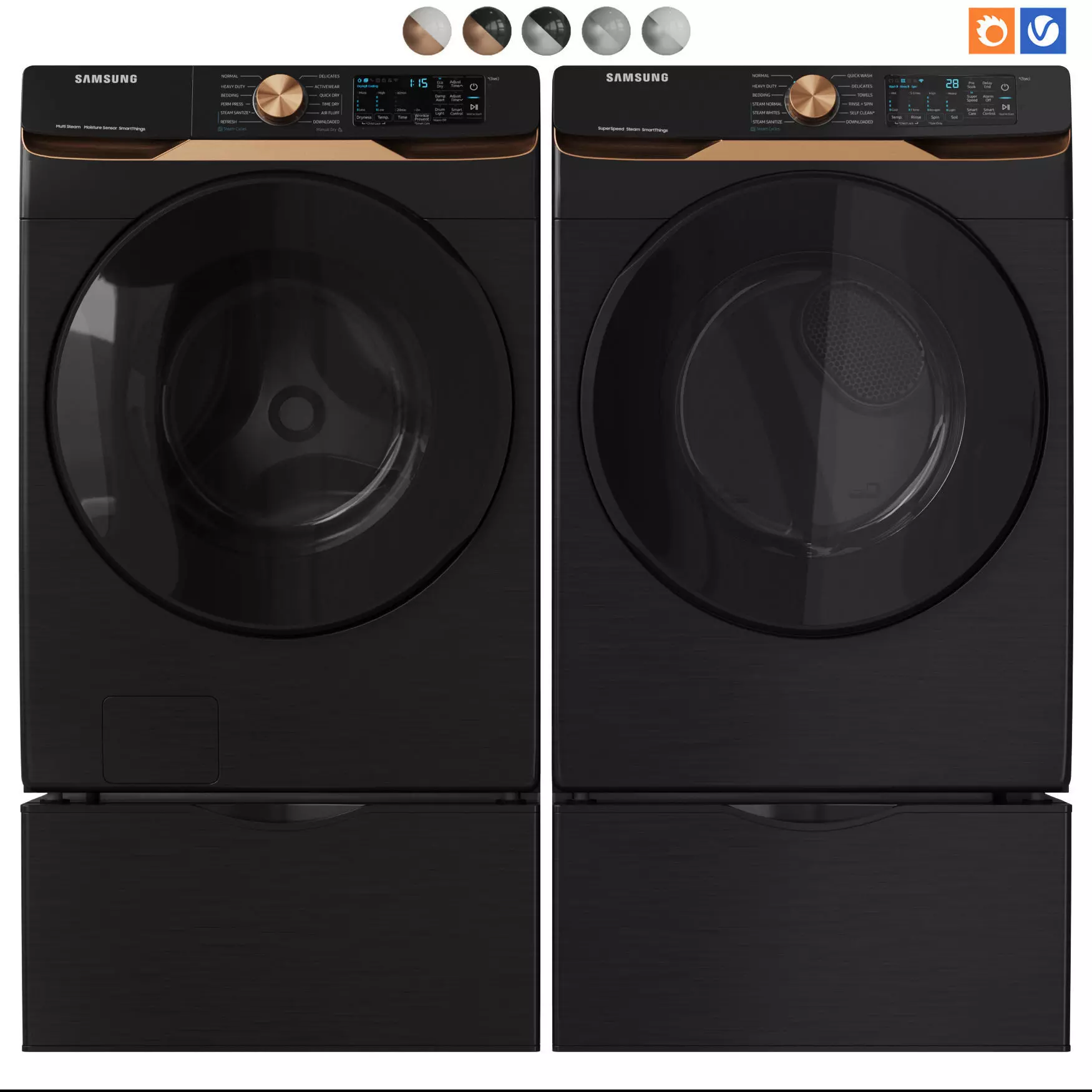 The model has material settings that define how surfaces look (color, shine, transparency, etc.).