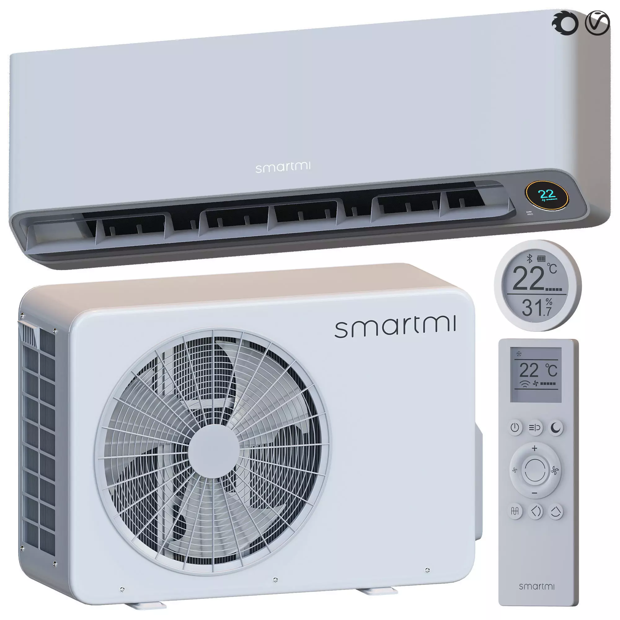DimensionsIndoor unit of split system or mobile air conditioner (WxHxD)95.3x31.5x20.3 cmOutdoor unit split system or window air conditioner (WxHxD)87.2x57x37.2 cm
