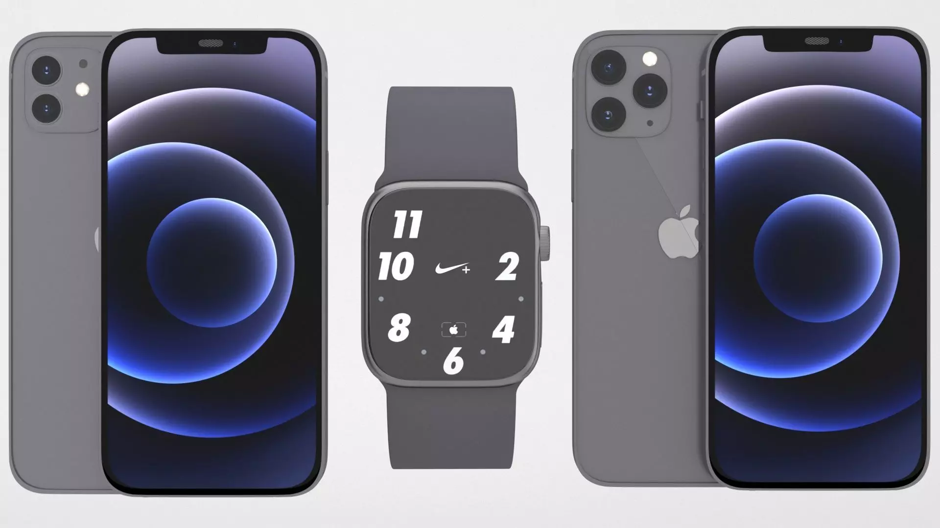 iphone 12 all set including PRO with apple watch serires 6 44mm red product model that is created to help you add the realism to your project.The model is suitable for any visual production - broadcast, high-res film close up, advertising, games, design visualization, forensic presentation, etc.