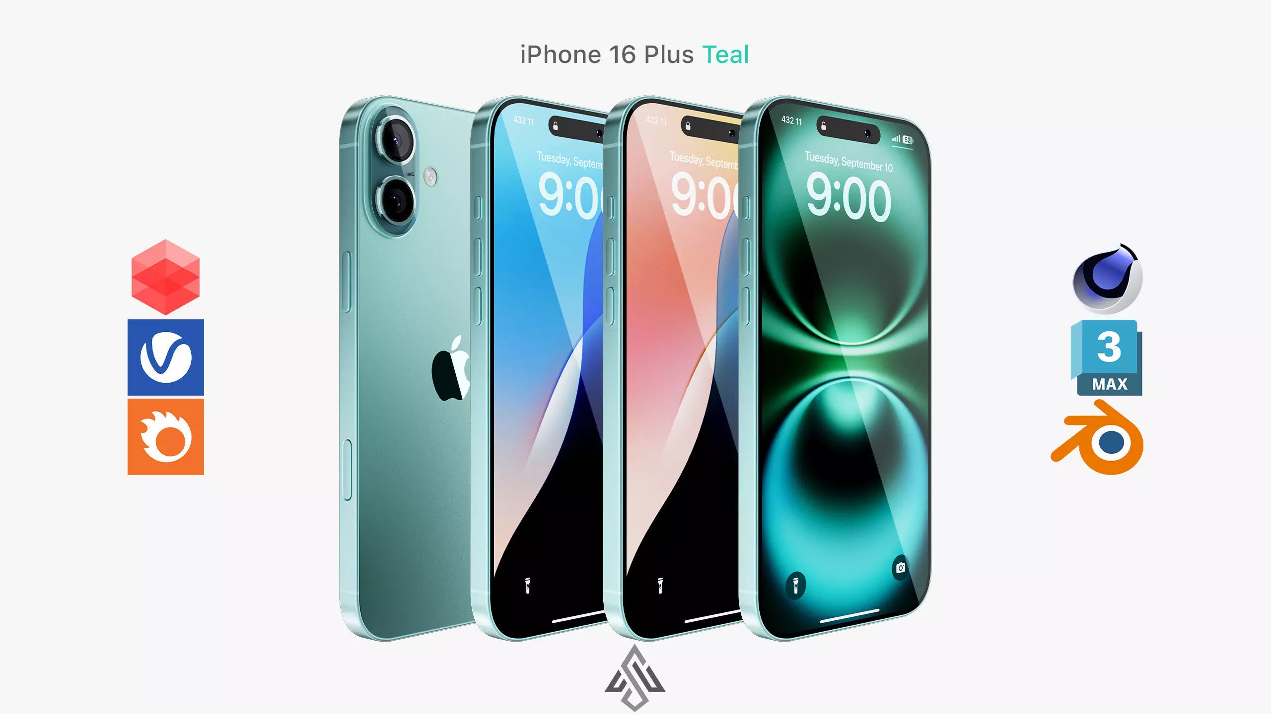 • This 3D model is based on dimensions of Apple iPhone 16 Plus Teal .