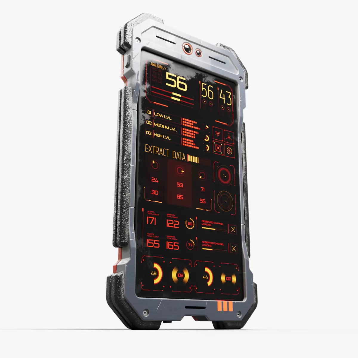 Original design of detailed cyber/scifi smartphone with high resolution 4K PBR textures.