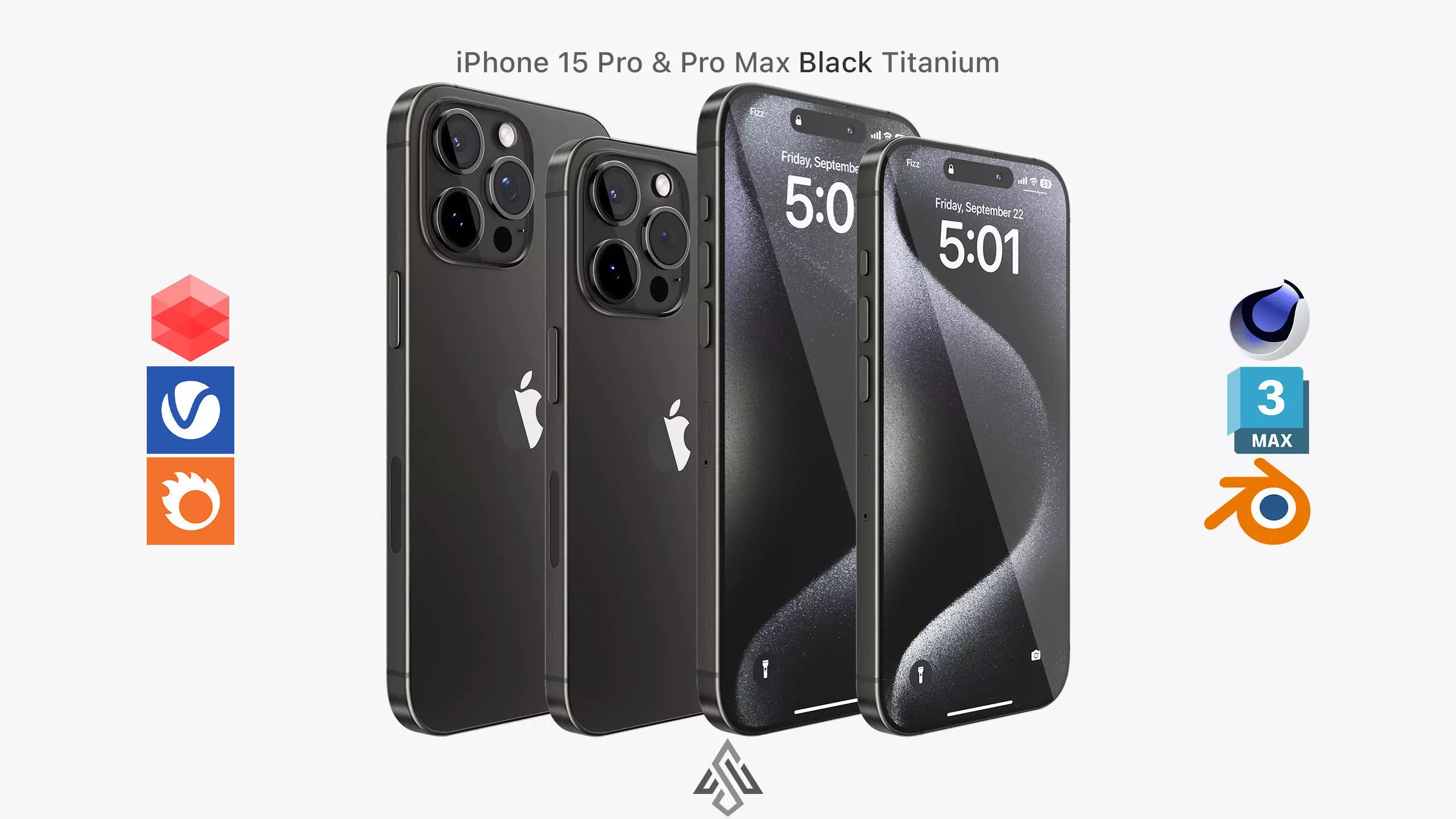 • This 3D model is based on dimensions of “ Apple iPhone 15 Pro & Pro Max Black Titanium”.