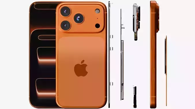 This is a high-end, production-ready 3D model of the iPhone 17 Pro, created with extreme attention to detail for professional use. The model includes accurate exterior geometry as well as fully modeled internal components, making it suitable for exploded views, product animations, technical visualizations, AR/VR, and cinematic renders.