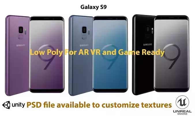 Samsung Galaxy S9 Low Poly model for AR VR low-poly 3d model ready for Virtual Reality (VR), Augmented Reality (AR), games and other real-time apps.