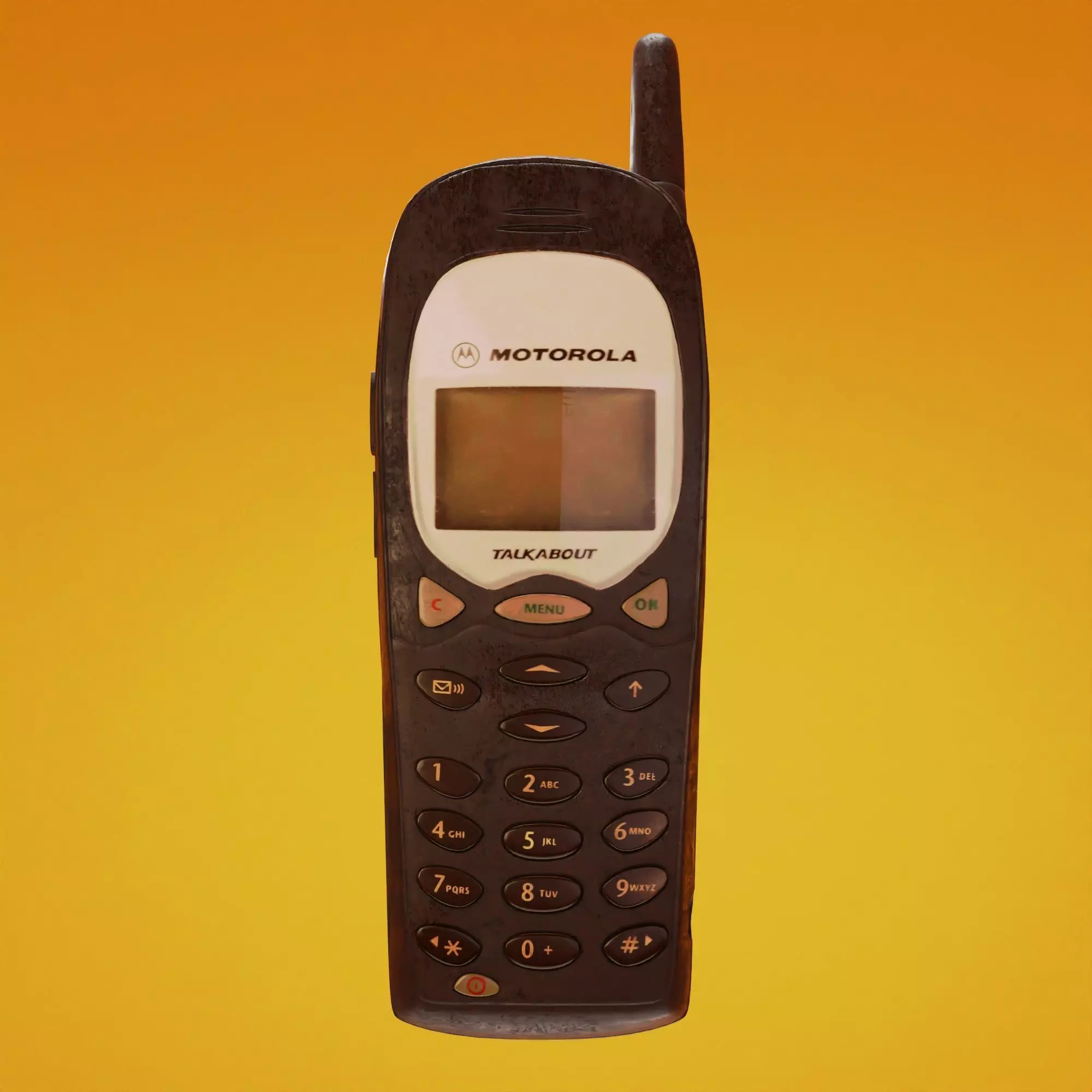 Motorola talkabout 2000s telephone. Made in blender, model have textures and UV mapped islands.Polygons: 31,327Vertices: 62,927
