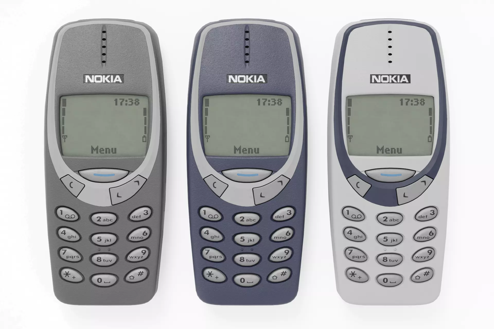 A high poly model of the legendary Nokia 3310. The model includes six different color variants. All textures are in 4K resolution. Preview images have been rendered using Cycles renderer.