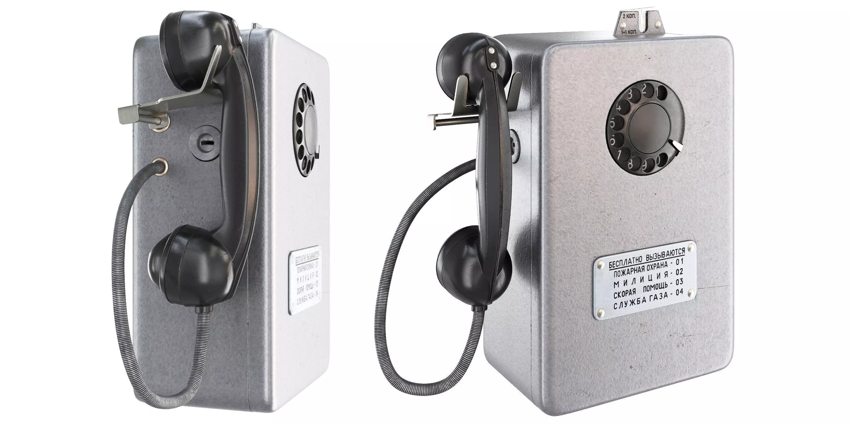 Model AMT-69 stands for Automatic Coin Telephone developed in 1969. The appearance is minimalistic. Accepts coins of 1 or 2 kopecks.