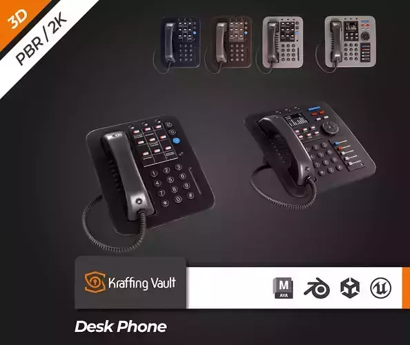 Kraffing presents a 3D modeling Desk Phone V1. Recreated design so you can use it in personal projects, scenes, videogames and more.