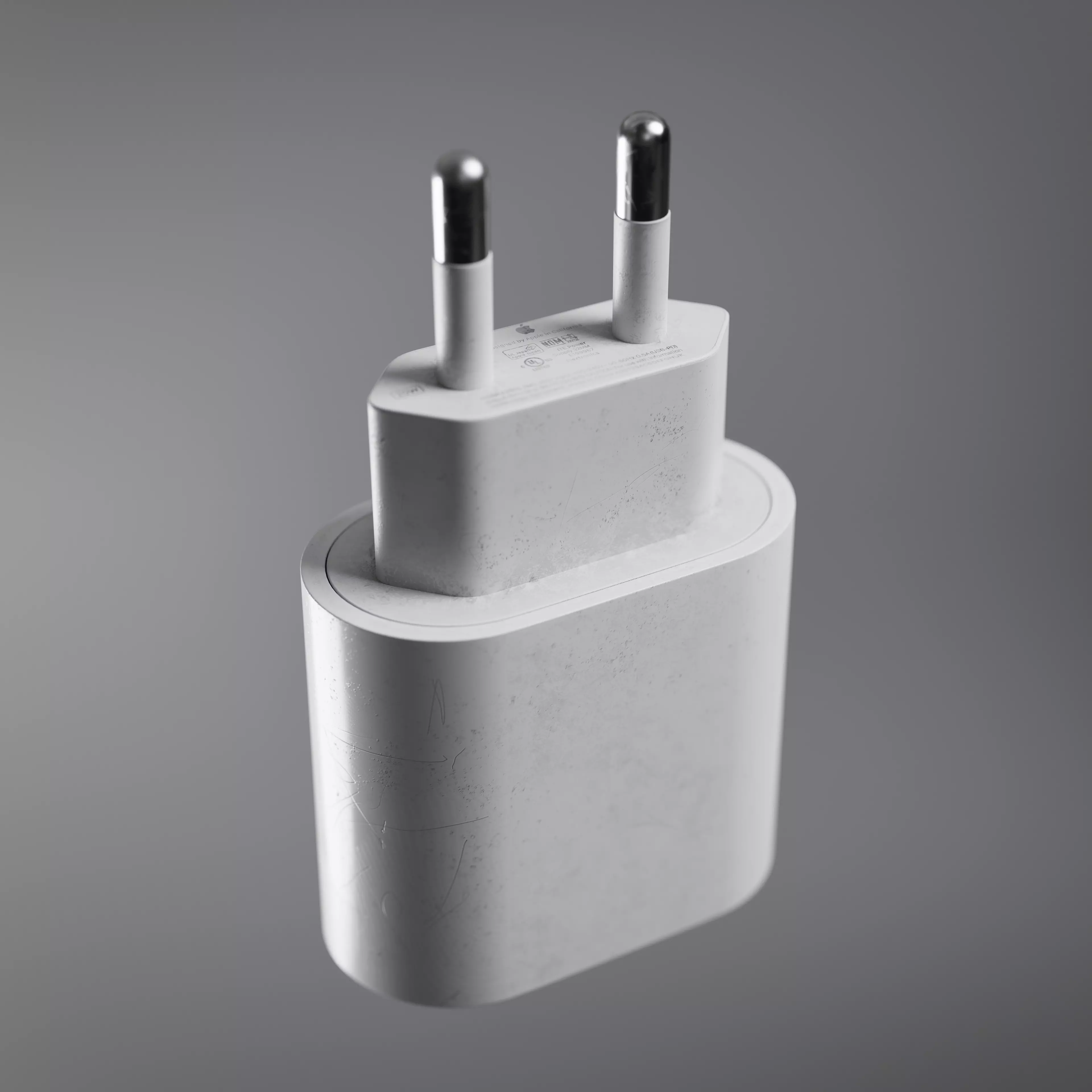 Realistic apple 20w charger brick, done using substance painter, the texture is realistic with damages and use marks all over the model.