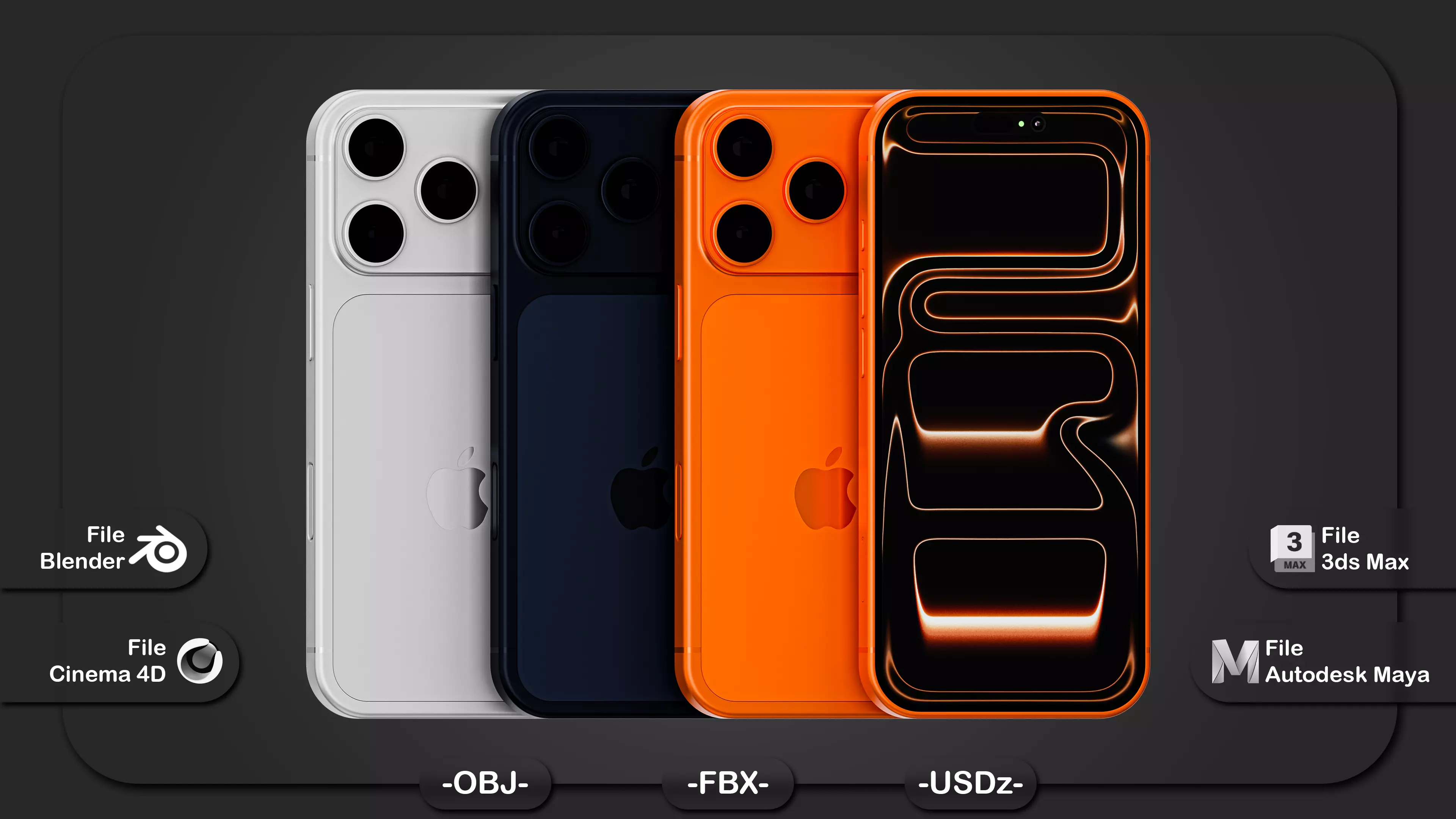 This realistic iPhone 17 Pro Max 3D model includes all color variants and is designed for high-end product visualization, advertising, and cross-platform production workflows.