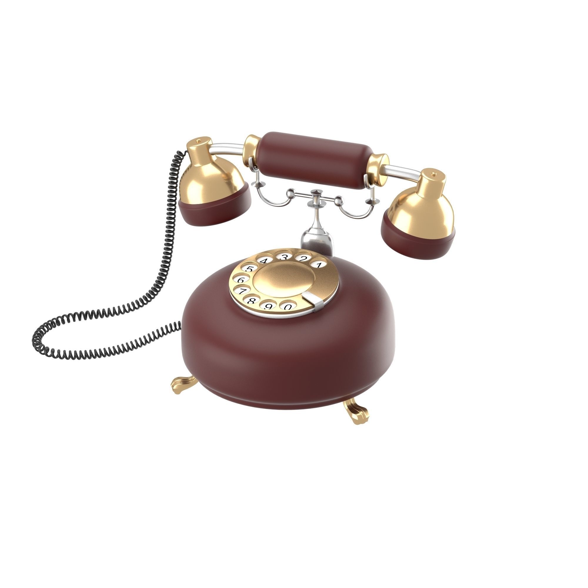 Retro phone in dark red -------------------------------- Modeled in Blender 2.74. Rendered with Cycles. ----------------------------------- Blender scene (.blend) contains the phone and the scene (three light sources and a camera). The model is also available in .obj, .fbx and .dae file formats. Textures may need to be reapplied in application of your choice. There's no need to reapply anything in .blend file. There are one 2048x2048 texture files in .png file format. ----------------------------------- Polycount before subdivision: 30152 triangles, 15324 vertices. Polygon count(after subdivision): 485654 triangles, 243771 vertices. Polygons type: quads&tris. Subdivision level: 2nd. Subdivision modifier is not applied permanently in .blend file. Other formats (.obj, .fbx, .dae) include only the model itself (scene not included), before subdivision. ----------------------------------- Objects and materials are named distinctively so you can apply materials of your choice if needed. Original measurement system - centimeters. The model is centered and has the reasonable size (39.0 x 20.8 x 21.3 cm//15.4 x 8.2 x 8.4 inches). ----------------------------------- Feel free to contact me if you have any questions, I will be happy to answer them. Thank you for choosing my models! ----------------------------------- Deanora.