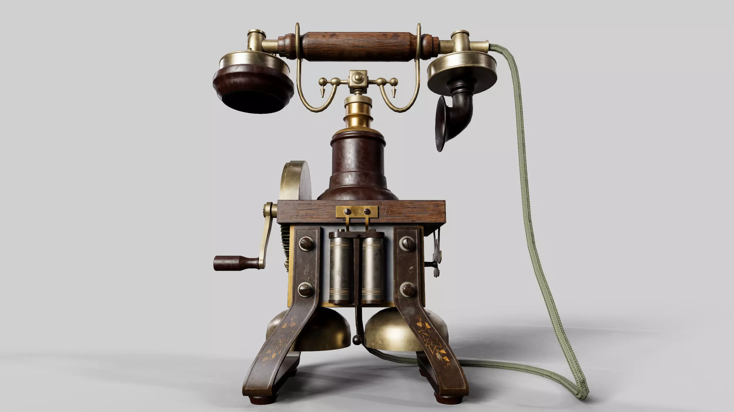A meticulously crafted 3D model of a 19th-century telephone, inspired by the earliest days of analog communication. This historically accurate piece reflects the pre-rotary era — with no numbered dial, a separate earpiece, and a hand-crank-inspired silhouette.