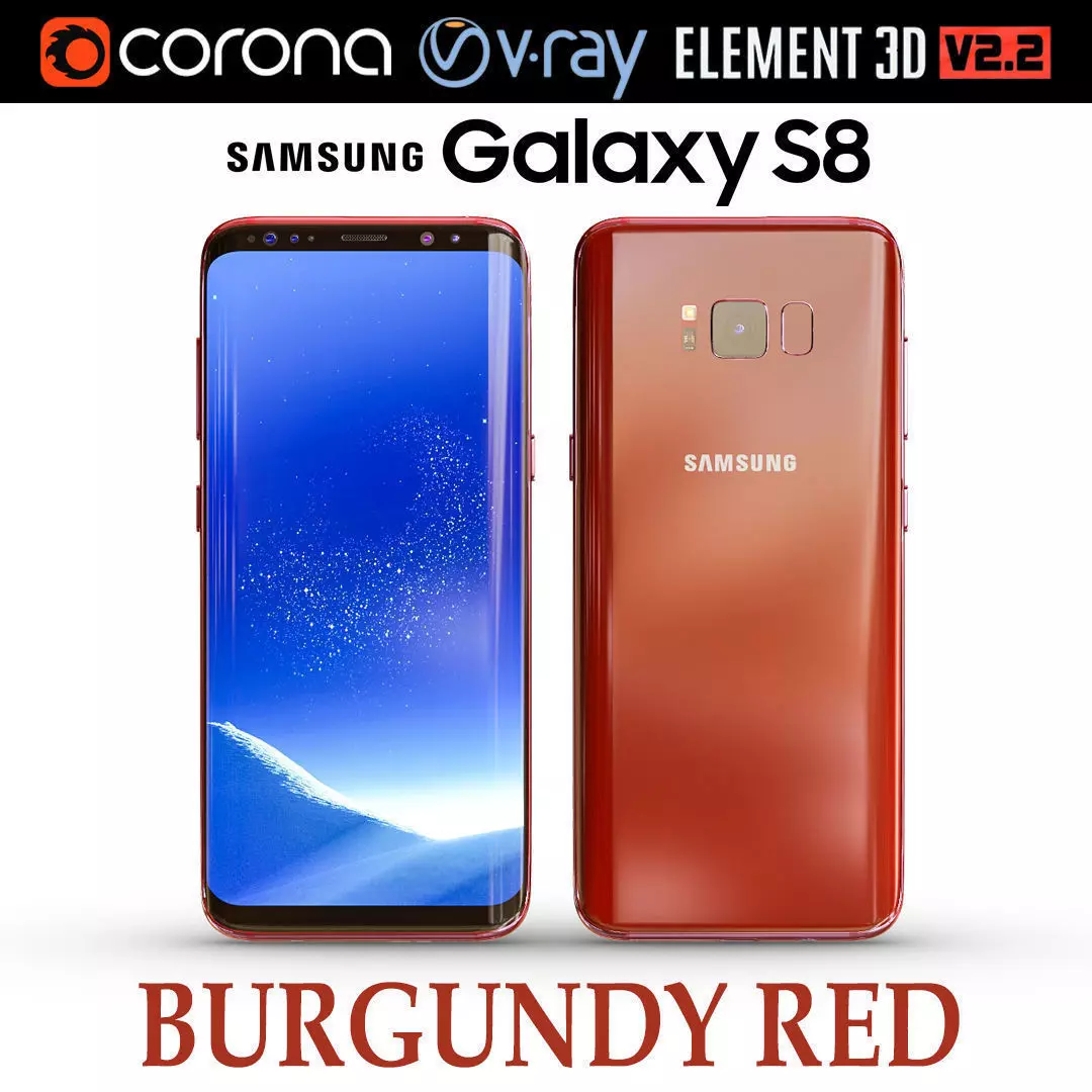 Realistic (copy) 3d model of Samsung Galaxy S8 BURGUNDY RED .