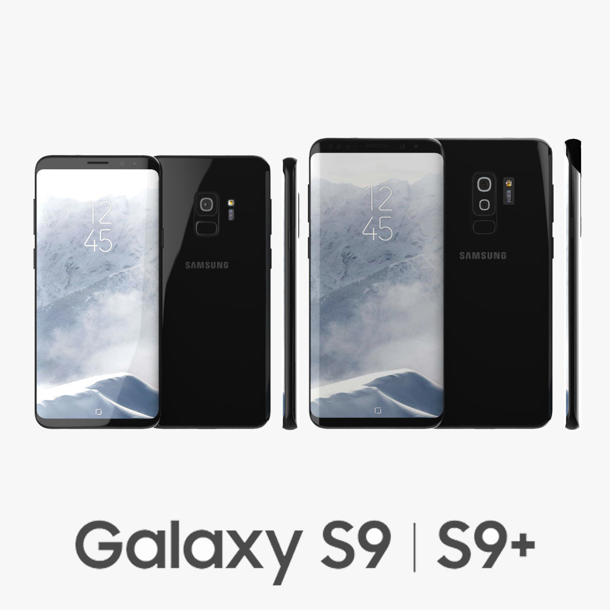Realistic (copy) 3d model of Samsung Galaxy S9, S9+ Black.