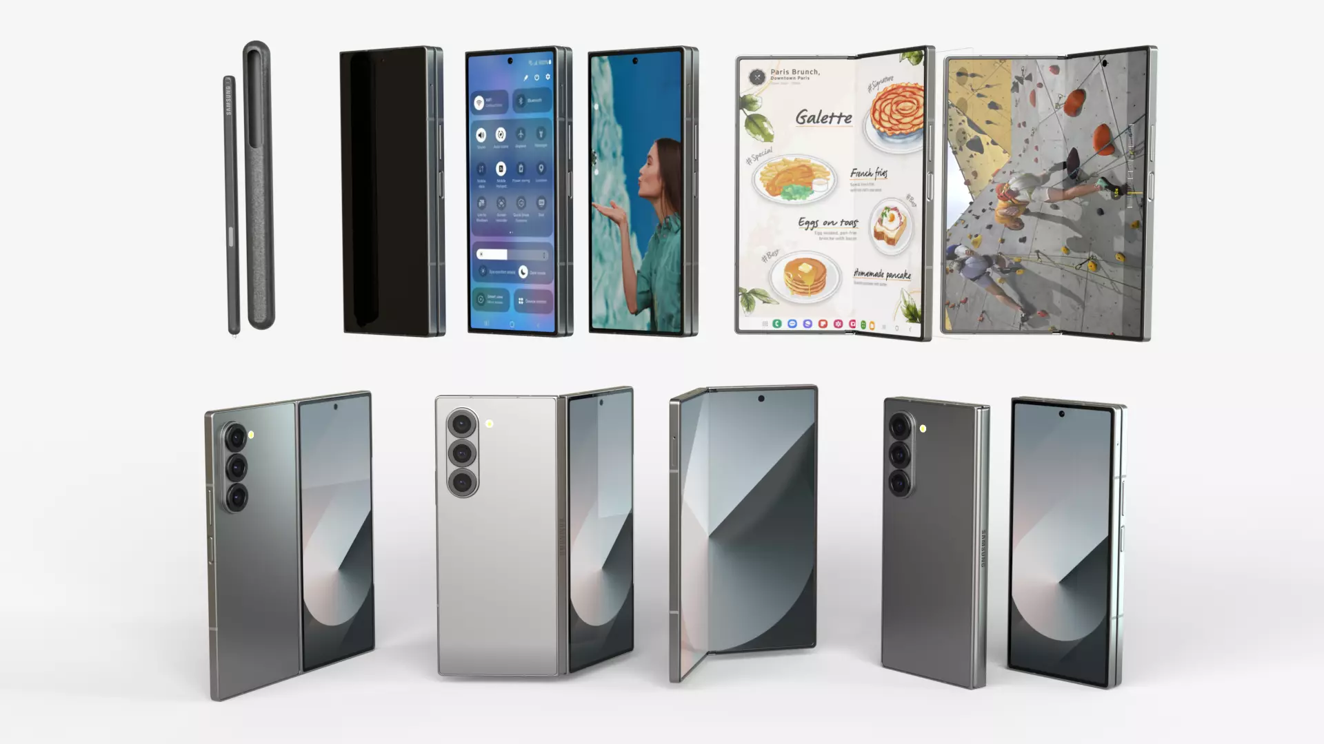 *Realistic 3D model of Samsung Galaxy Z Fold 6 Silver (Rigged animated and static versions) with Pencils *