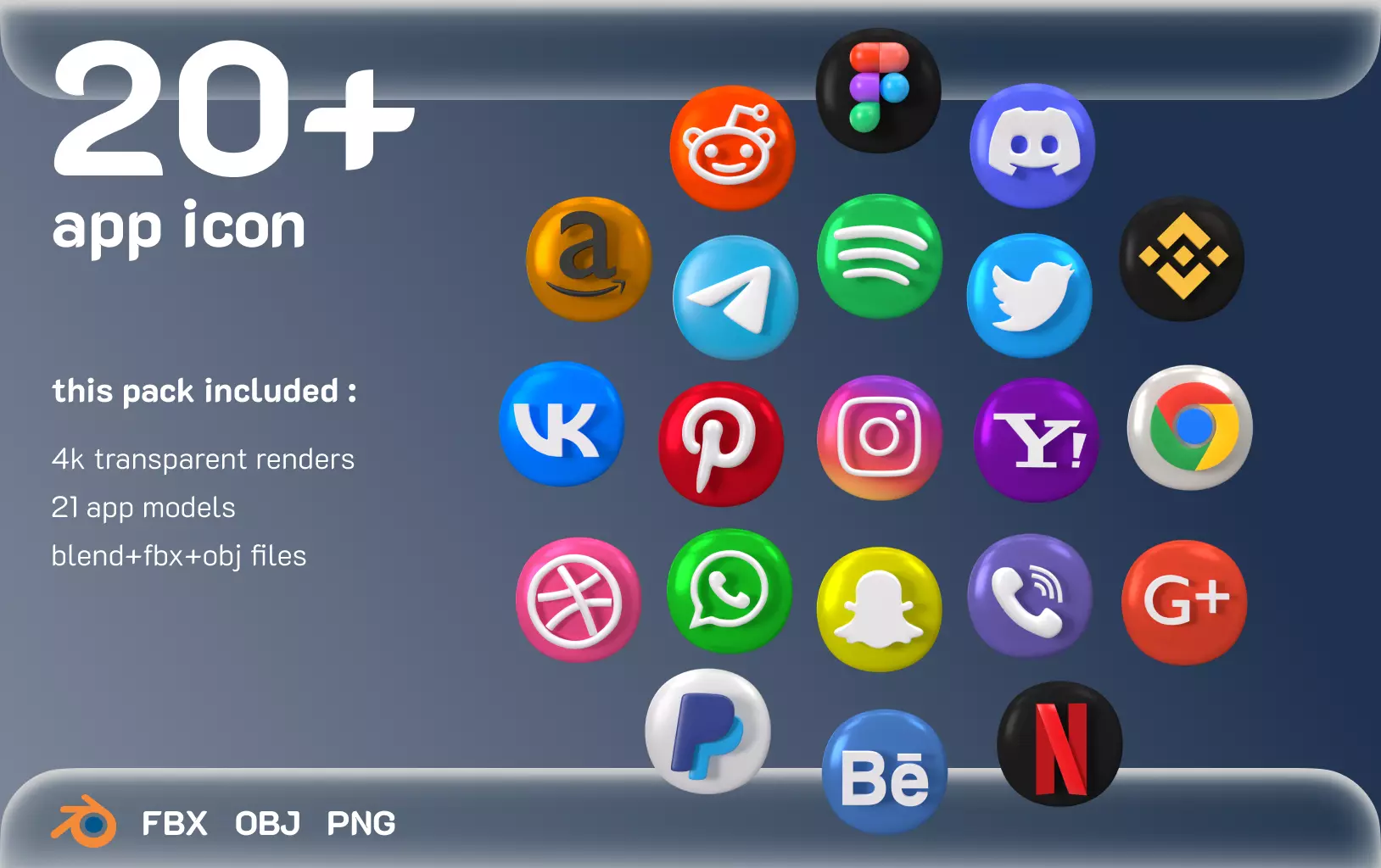 this pack included 21 social media application models and also 4k png renders of them (front view) which has shown in preview images