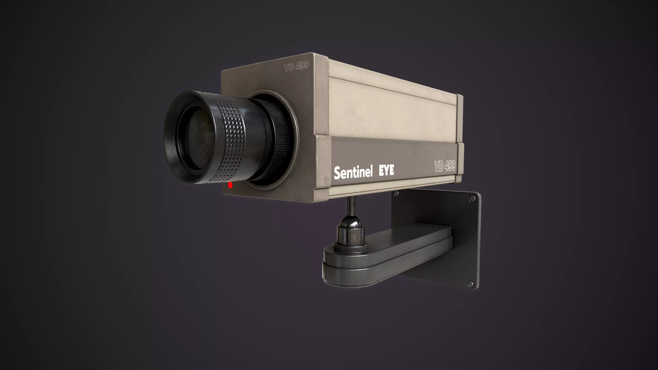 This model represents a 1980s style industrial CCTV camera. It features a rectangular body with