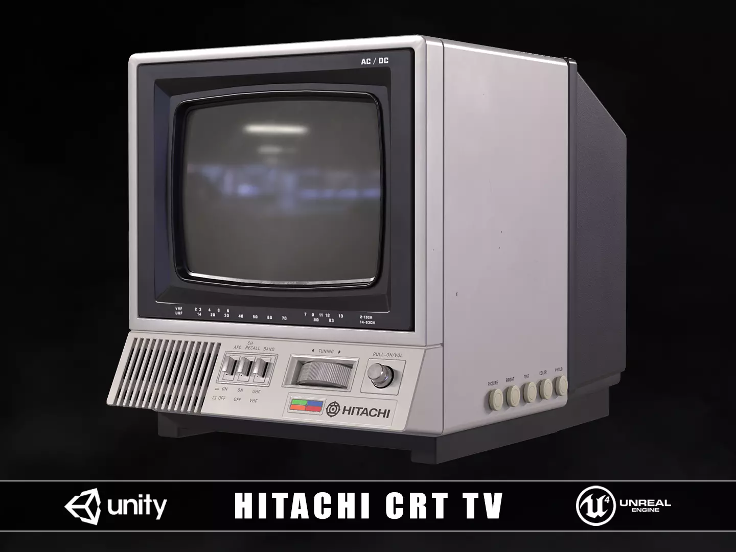 Retro 80s Hitachi CRT TV 3D model. This model comes with the TV and 3 texture sets. The texture sets include an OFF version, STATIC version and COLOR version. Modeled in Maya and textured with Substance Painter and Photoshop. The model is built to scale and is UV unwrapped with 4k textures. Includes 3D model and textures!