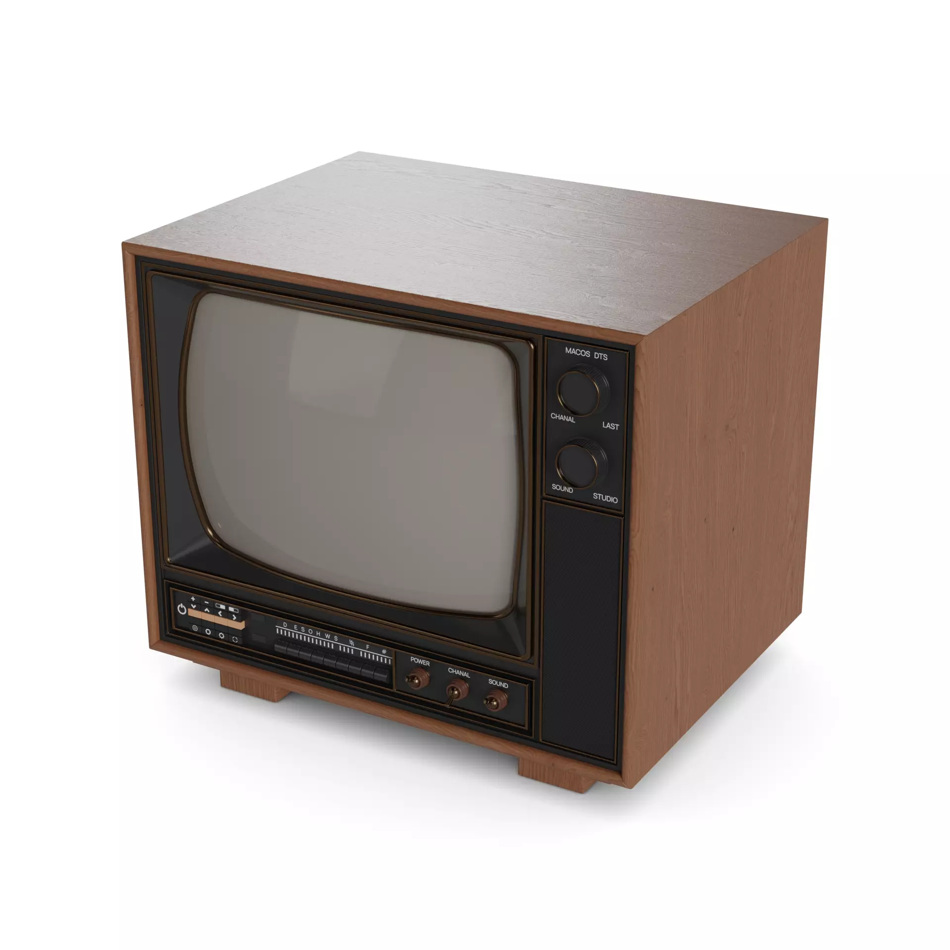 A bulky CRT television set with a curved screen, encased in a wooden cabinet, featuring manual channel dials and a built-in VHS player, reminiscent of 1990s living rooms.