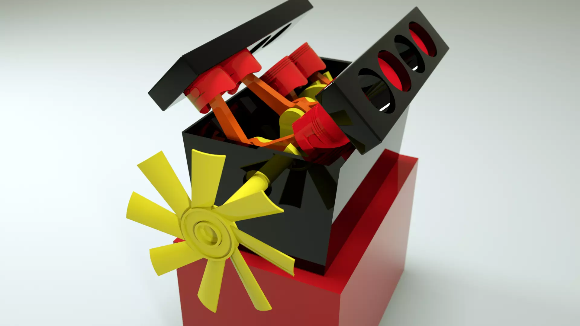 The model has material settings that define how surfaces look (color, shine, transparency, etc.).