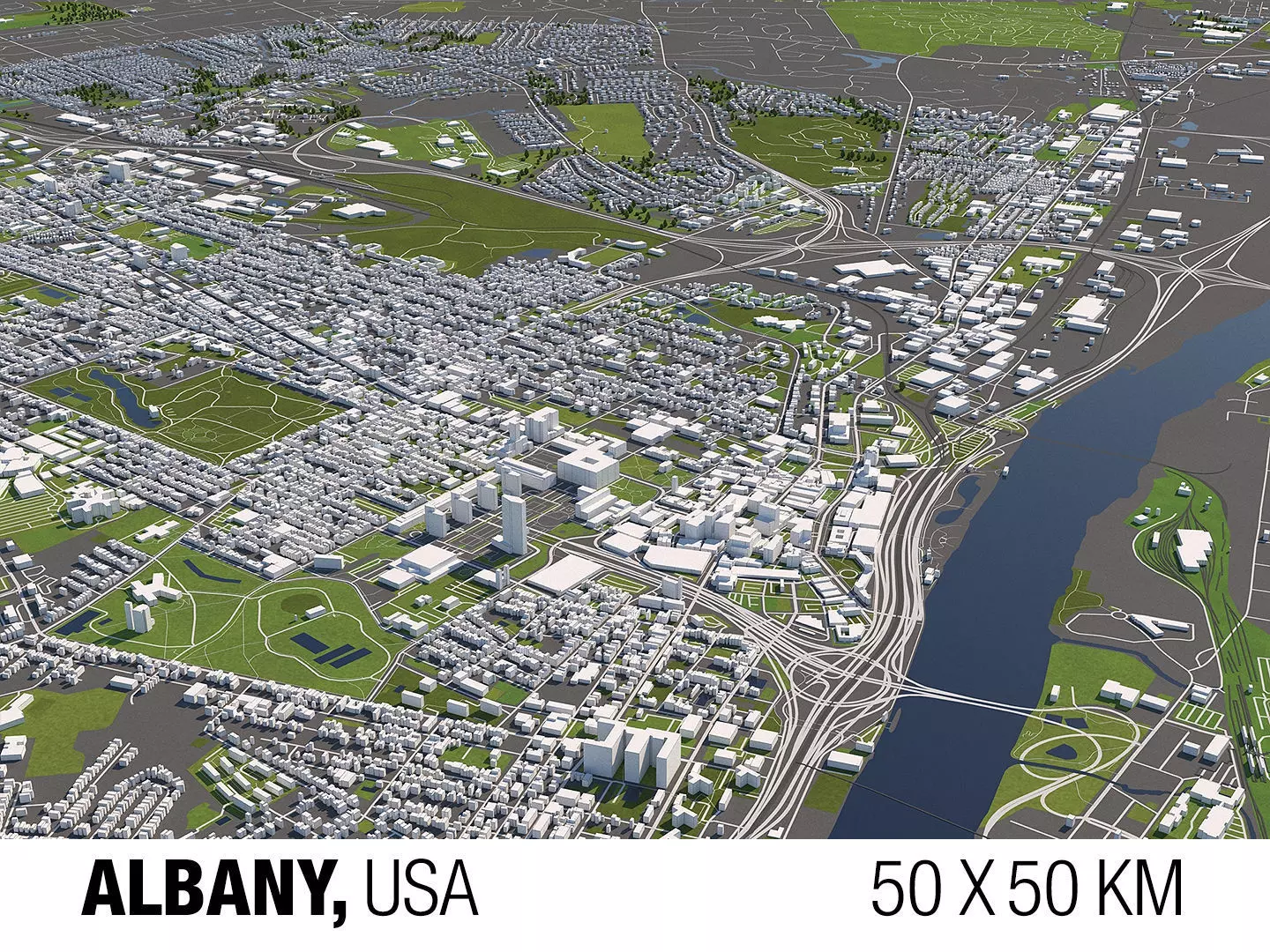 A DETAILED 3D MODEL CITY MAP OF ALBANY, NEW YORK, USA: