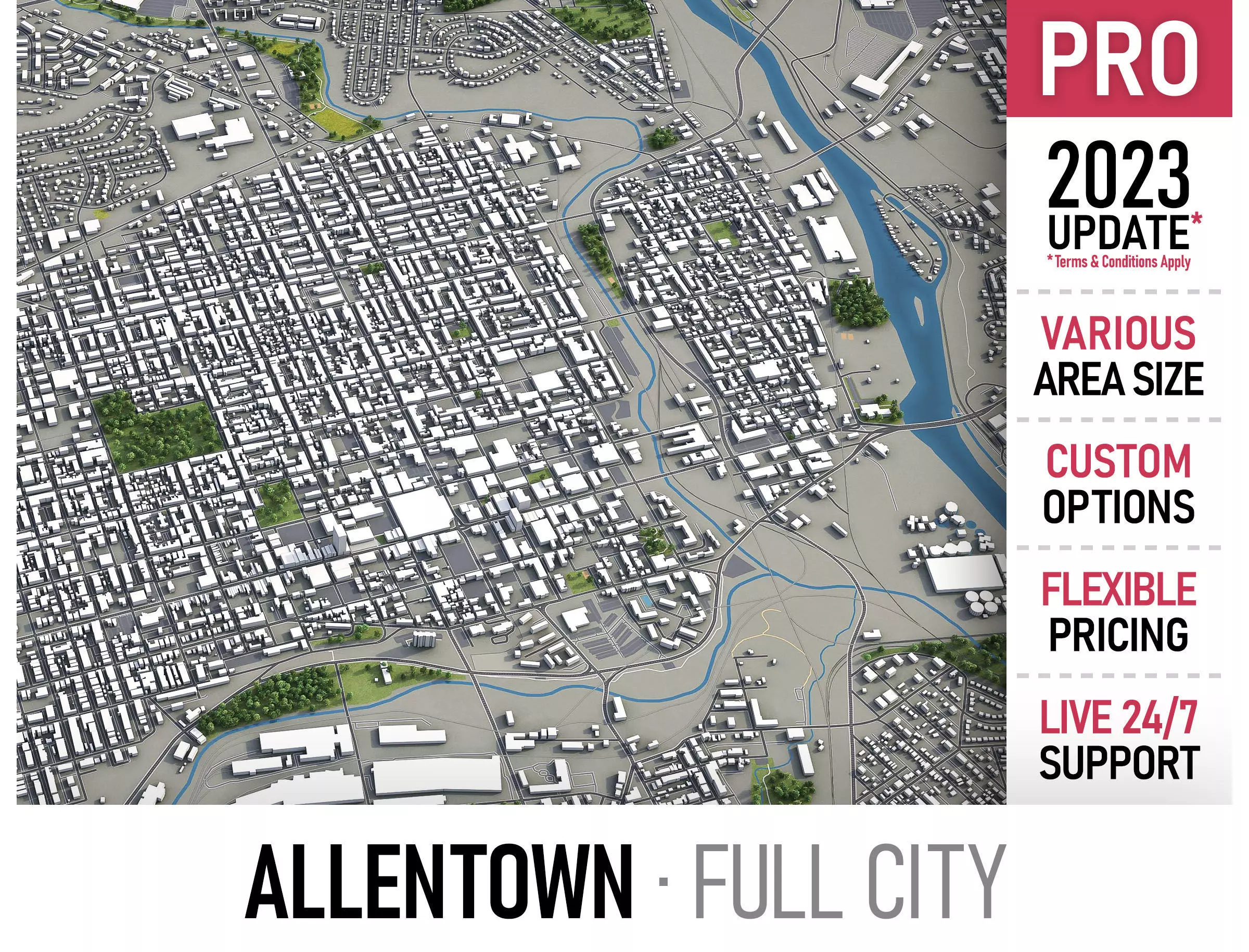 • Full city extents up to 100 x 100 km — or crop to an area of interest for better format compability and scene performance