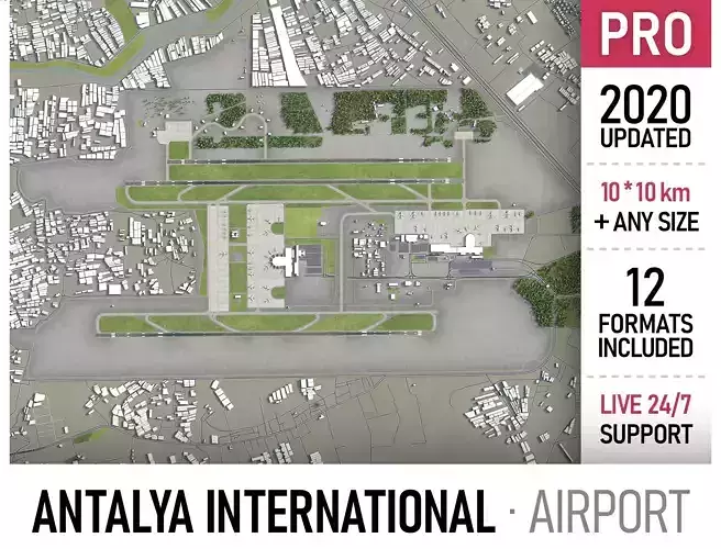 This is exact and accurate to-scale 3D model of Antalya Airport (AYT) and its surrounding area based on GIS data (December 2019)