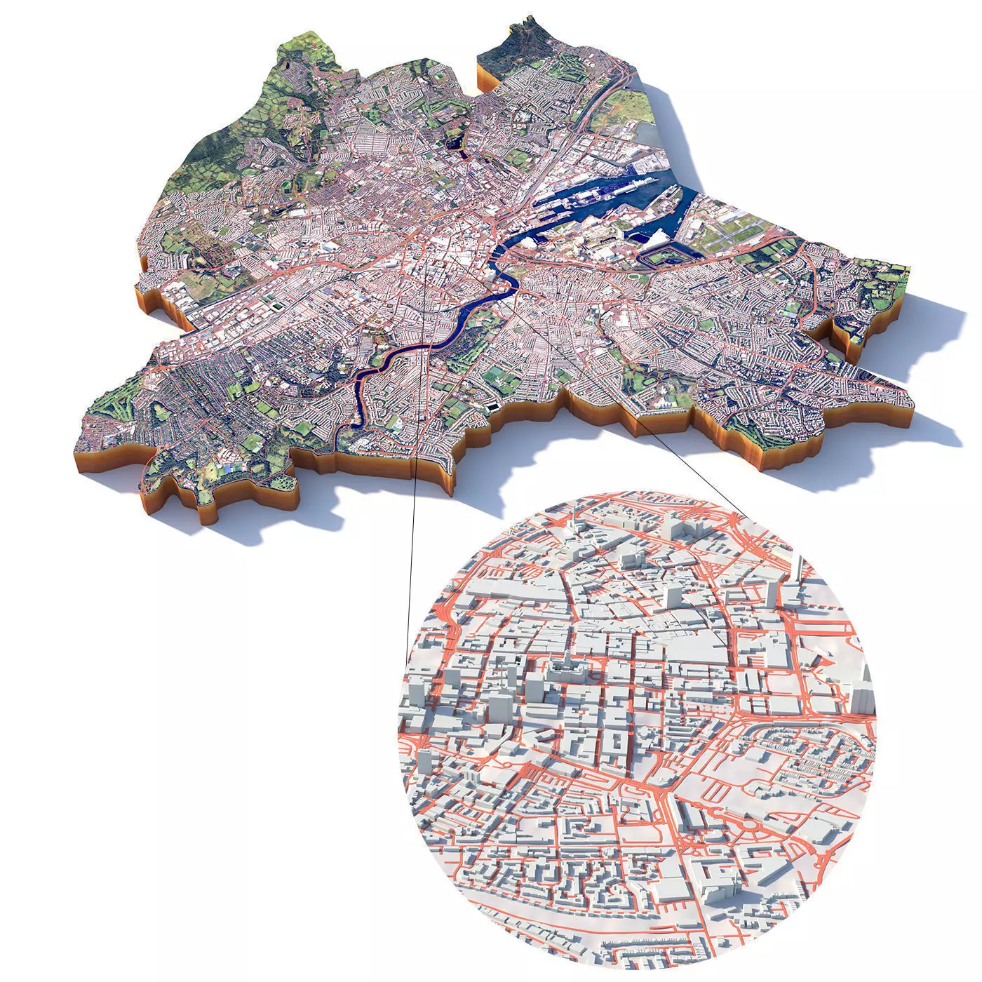 The model's surfaces are mapped to a 2D image, allowing textures to display correctly.