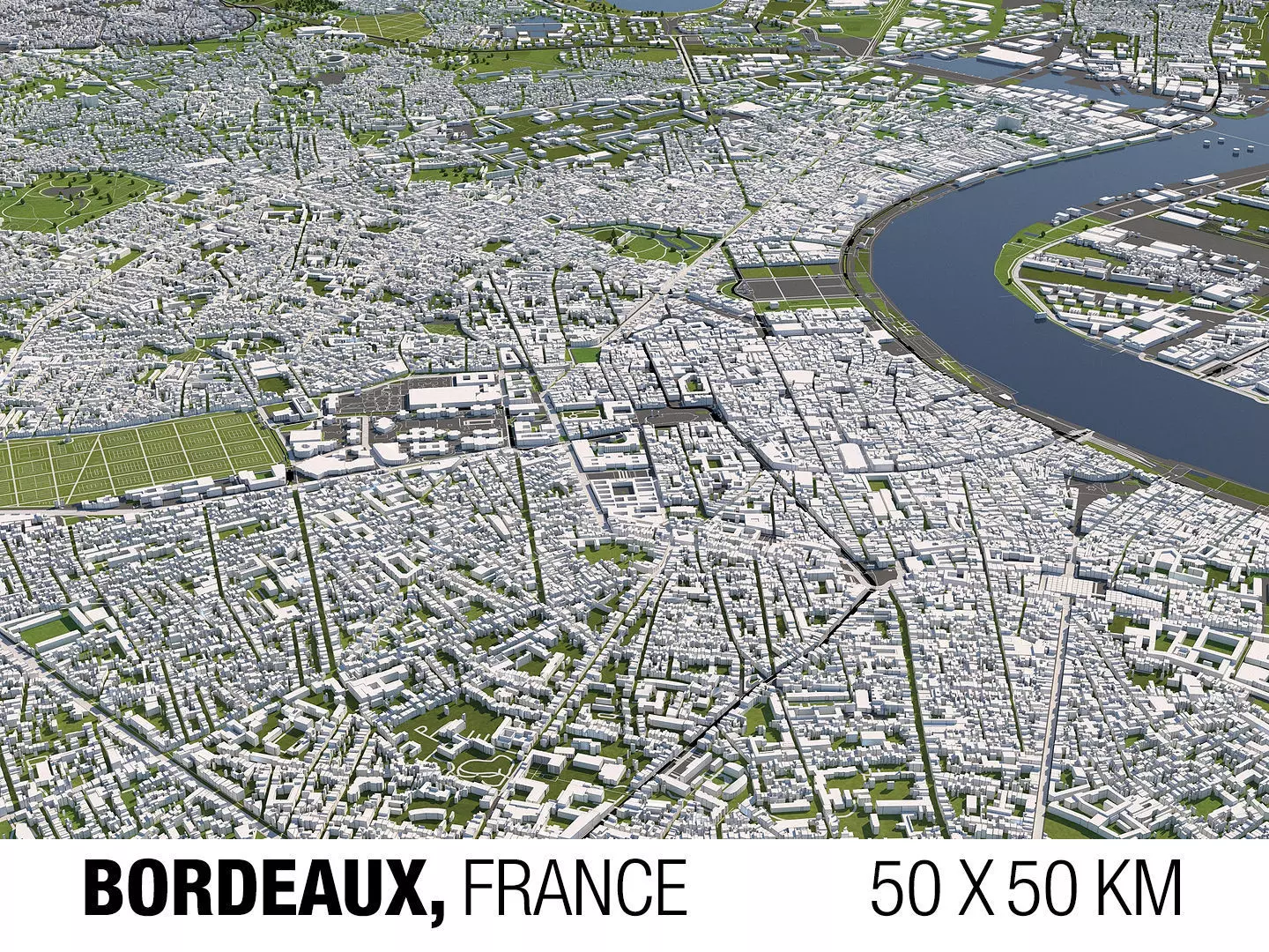 A DETAILED 3D MODEL CITY MAP OF BORDEAUX, FRANCE:
