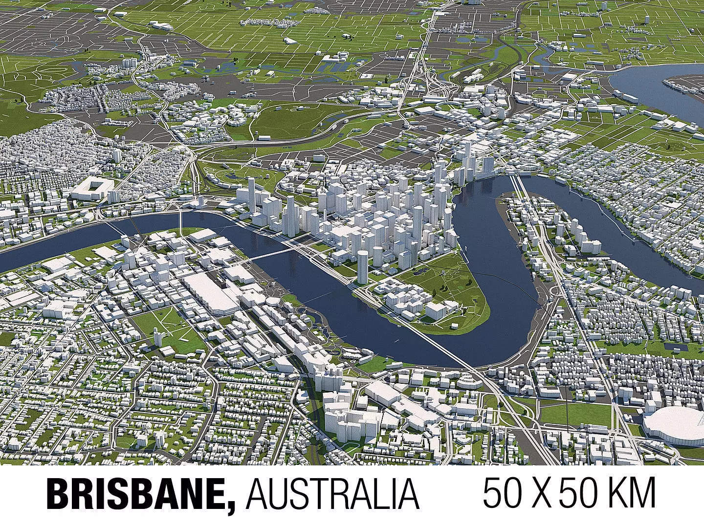 A DETAILED 3D MODEL CITY MAP OF BRISBANE, AUSTRALIA: