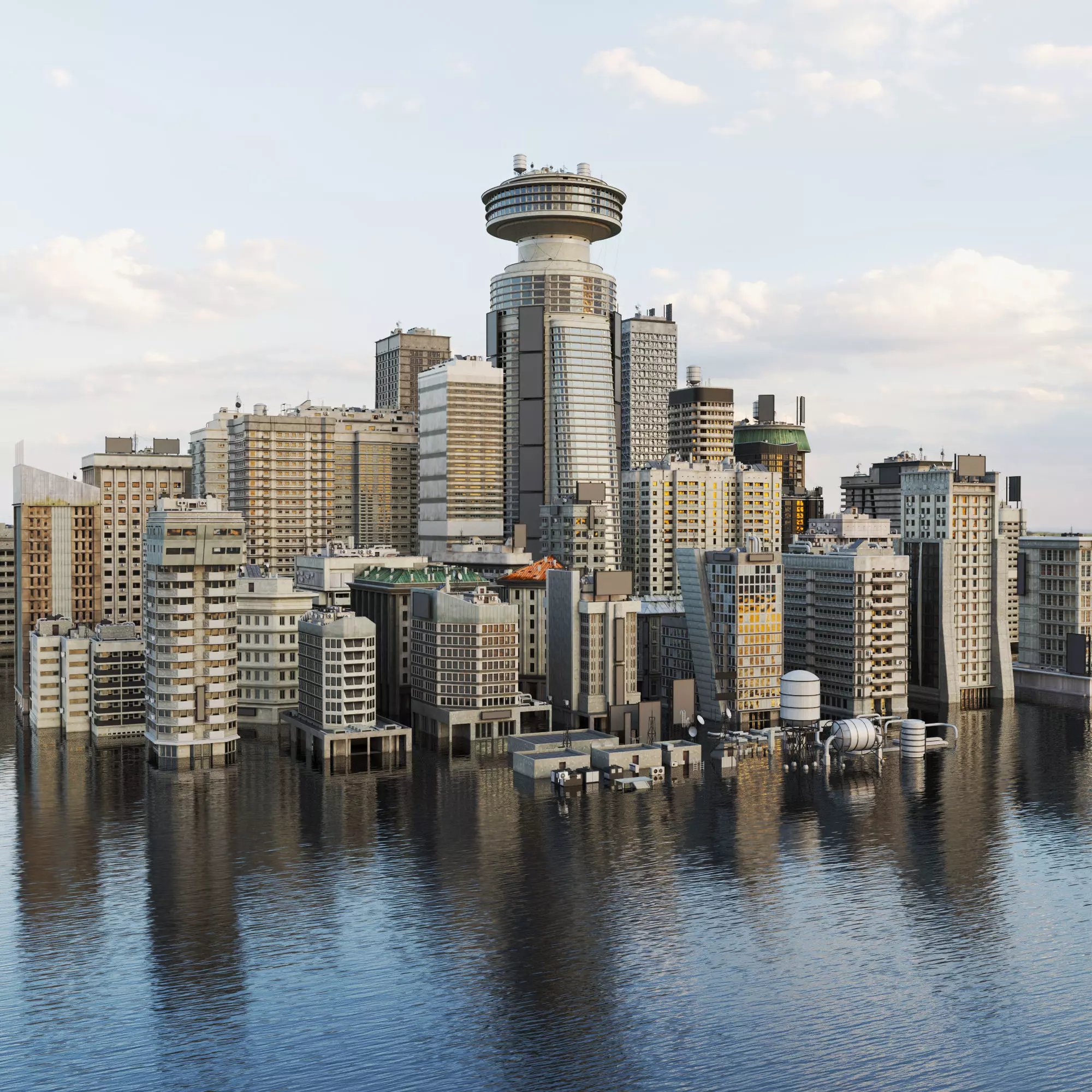Building Skyscraper City Town Downtown Realistic Suburbs Neighborhood Office Space Work Business Street Industrial Futuristic Warehouse Cityscape