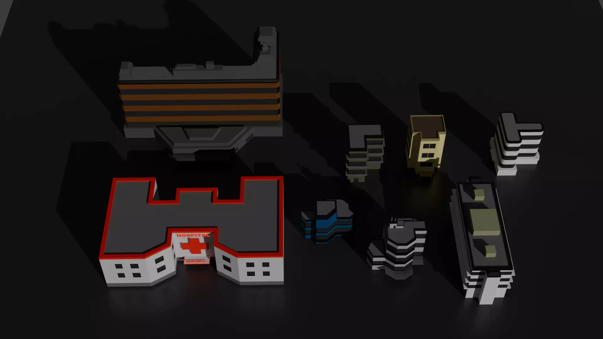 One of the buildings in this pack (the Hospital) is available as a free sample. The other 7 buildings are exclusive to this Asset Bundle listing.