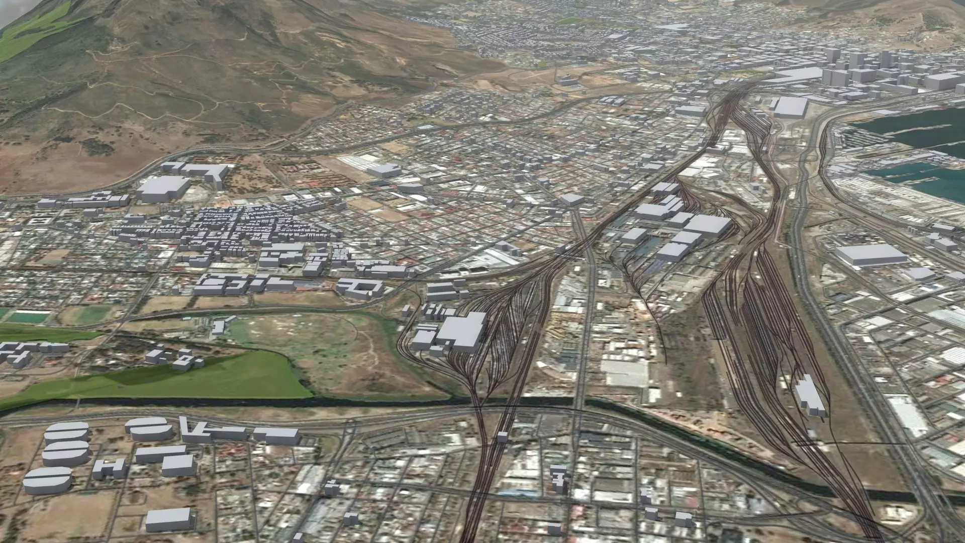Cape Town city and surrounds, South Africa. Geo-referenced model, ideal for arch-viz, city planning or simulations. 1-to-1 real-world scale in meters.