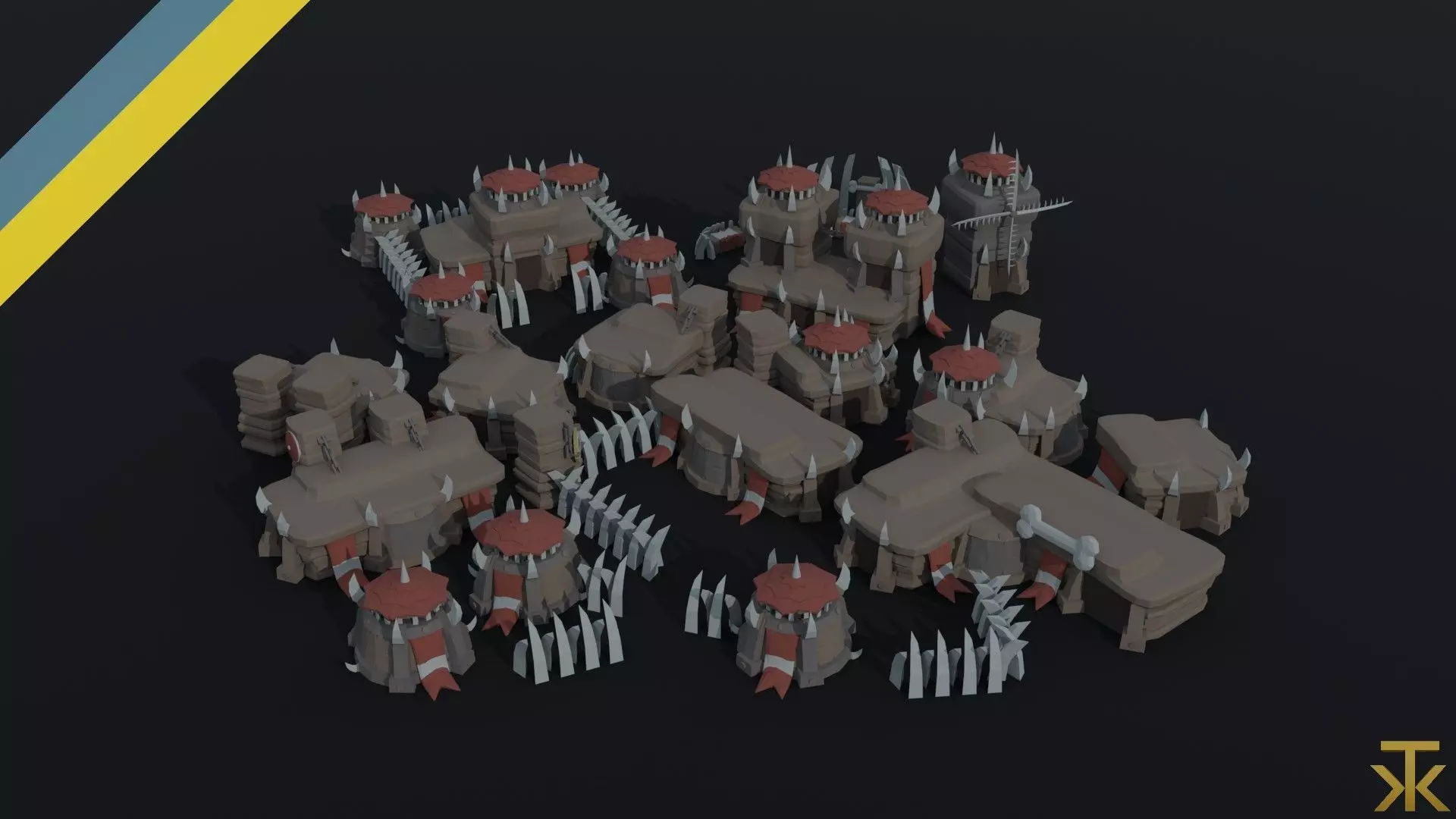 Cartoon orcs city asset Polygonal Style Low-poly 3D model