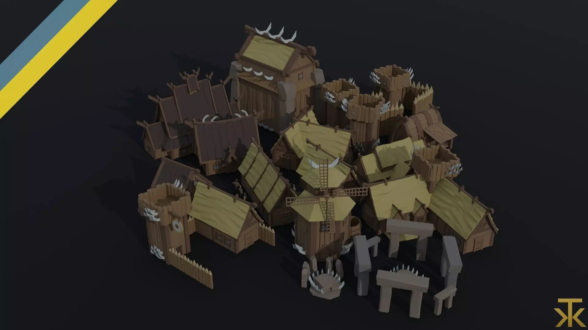 Cartoon viking city asset Polygonal Style Low-poly 3D model