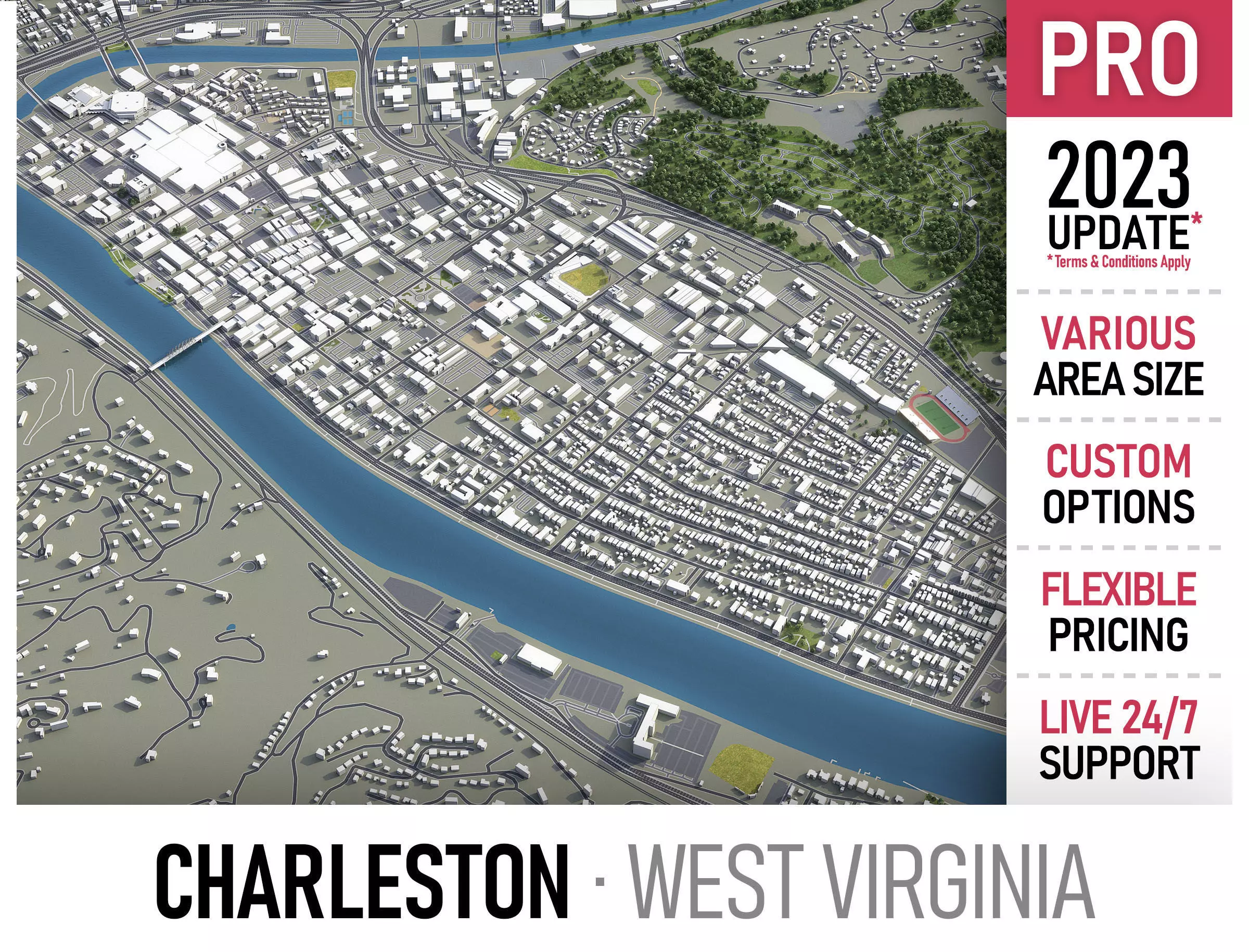 • Full city extents up to 100 x 100 km — or crop to an area of interest for better format compability and scene performance